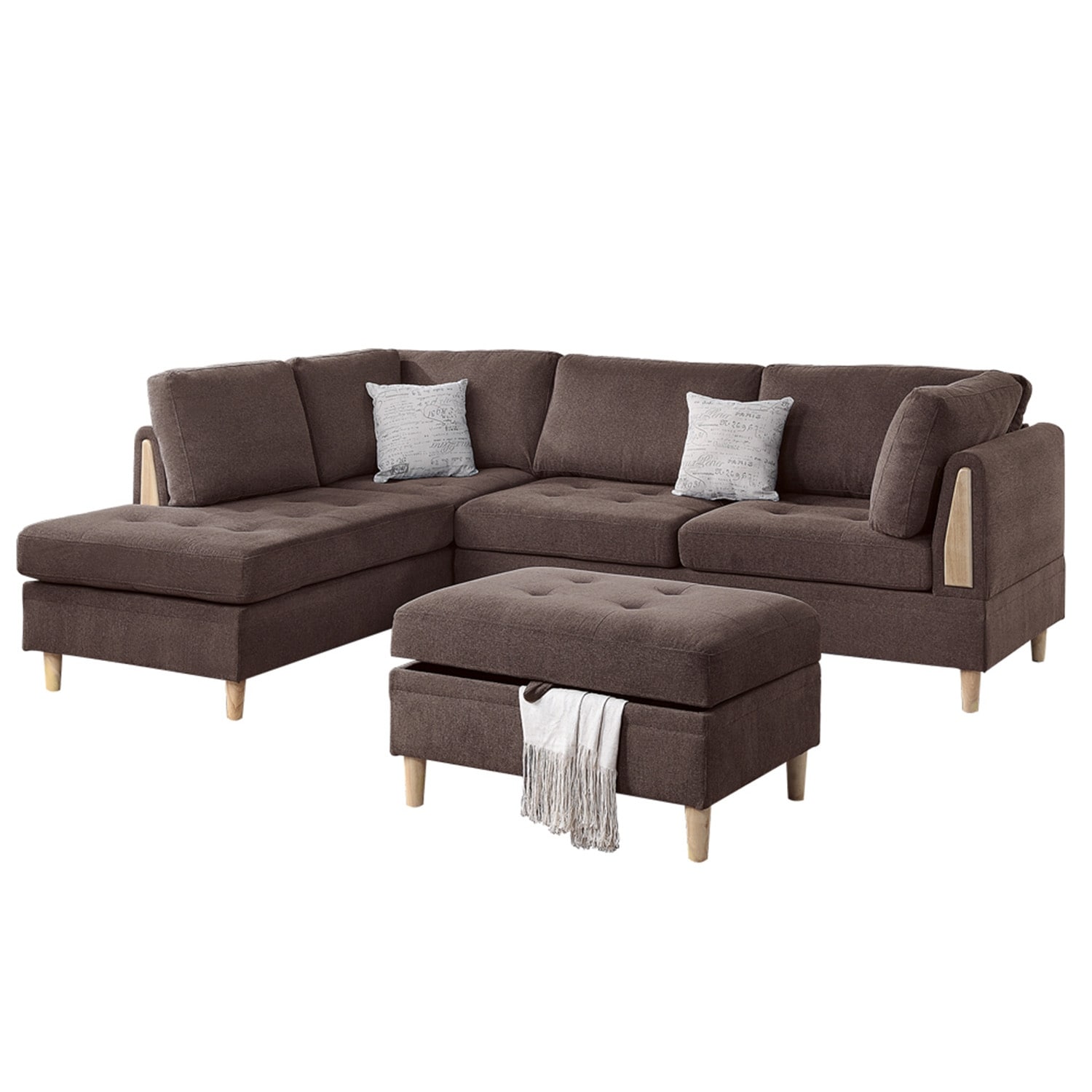 3 Piece Reversible Sectional Sofa Set W/ Ottoman in Coffee Color