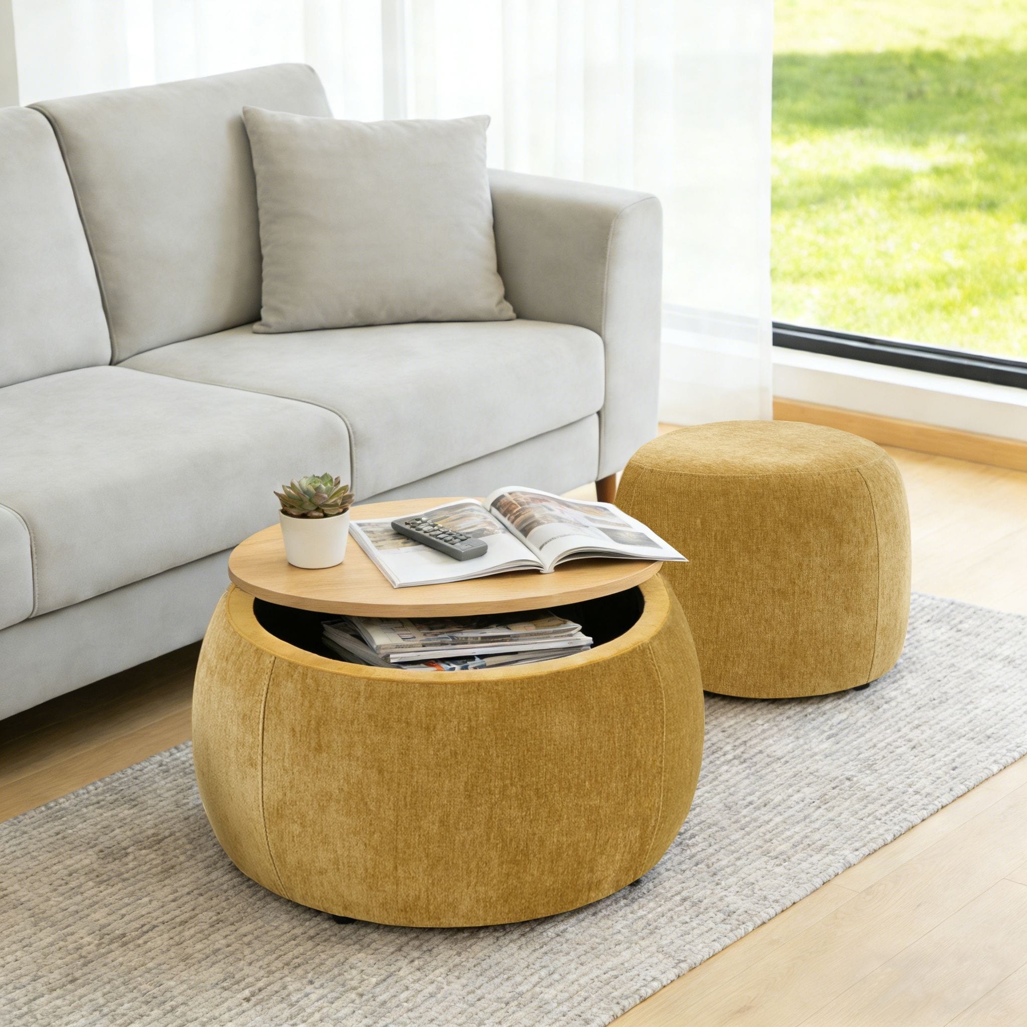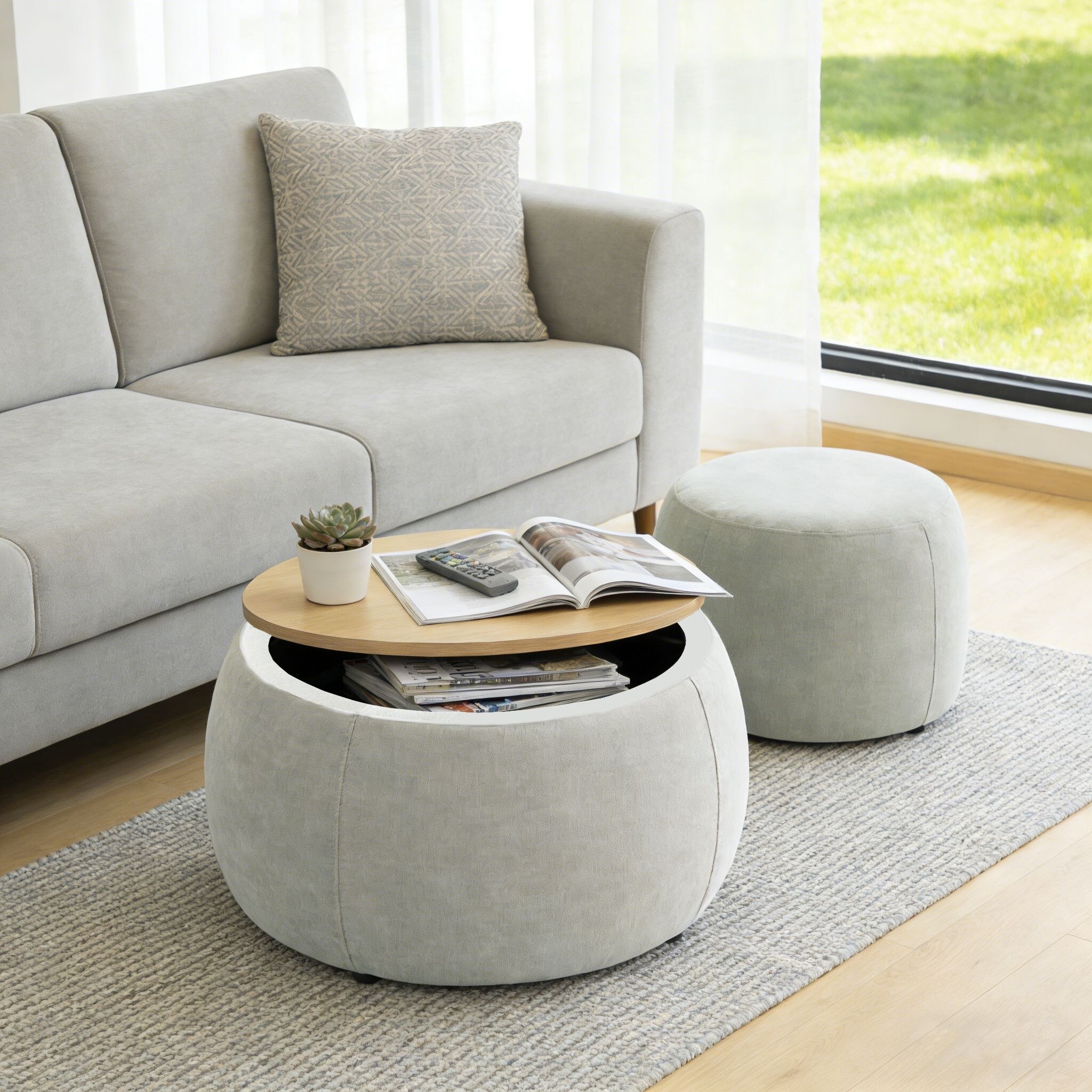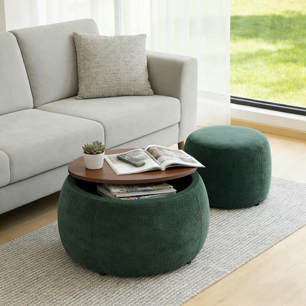 Modern Fabric Storage Stool Set, Includes Round Stool + Storage Stool