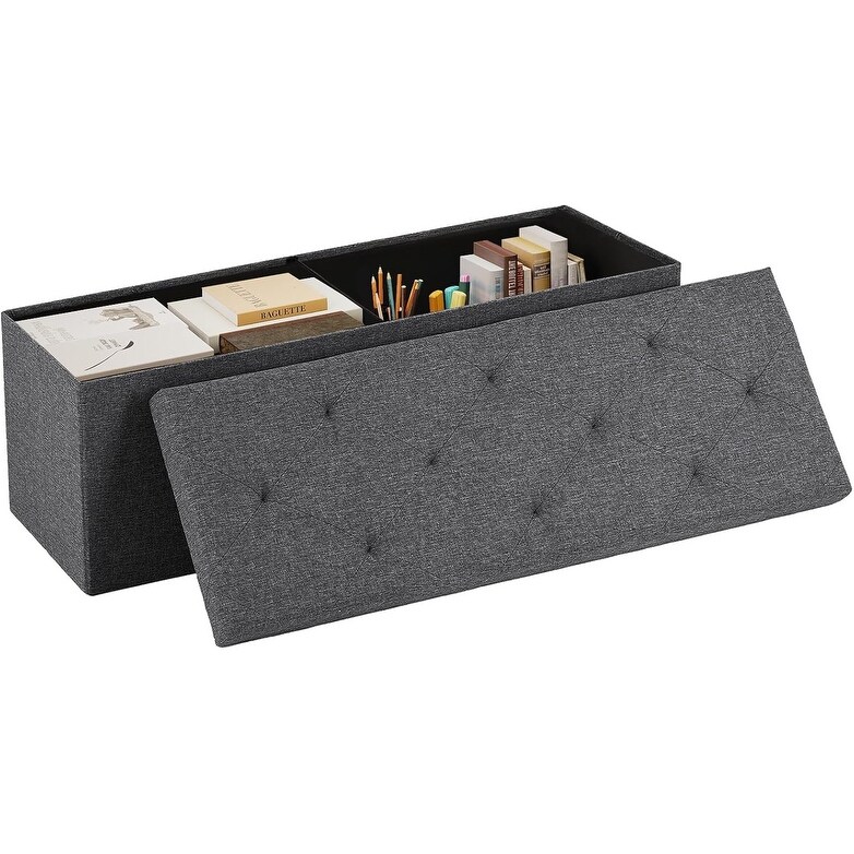 Foldable Storage Ottoman - Large Chest with Padded Seat, 660lbs Capacity, Grey