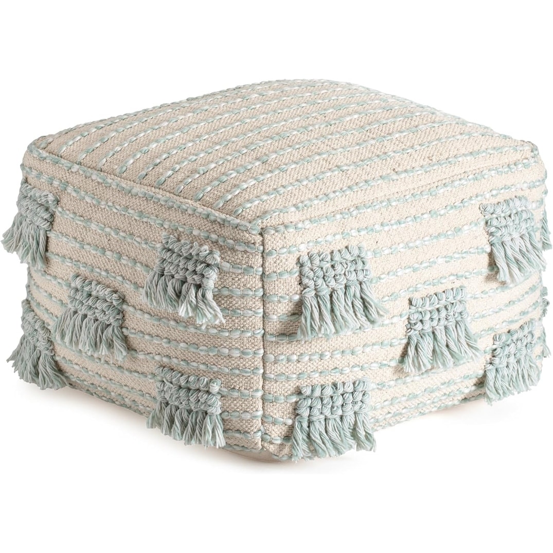 Handmade Comfortable Pouf Ottoman Footrest for Living Room, Bedroom, Kidsroom - 22" x 22" x 16", Green/Beige