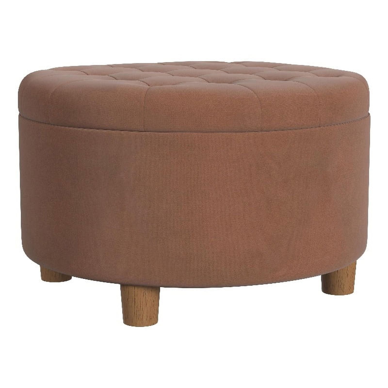 28-inch Round Velvet Storage Ottoman with Tufted Lid and Wood Legs, 17-inch Height, 250lb Capacity