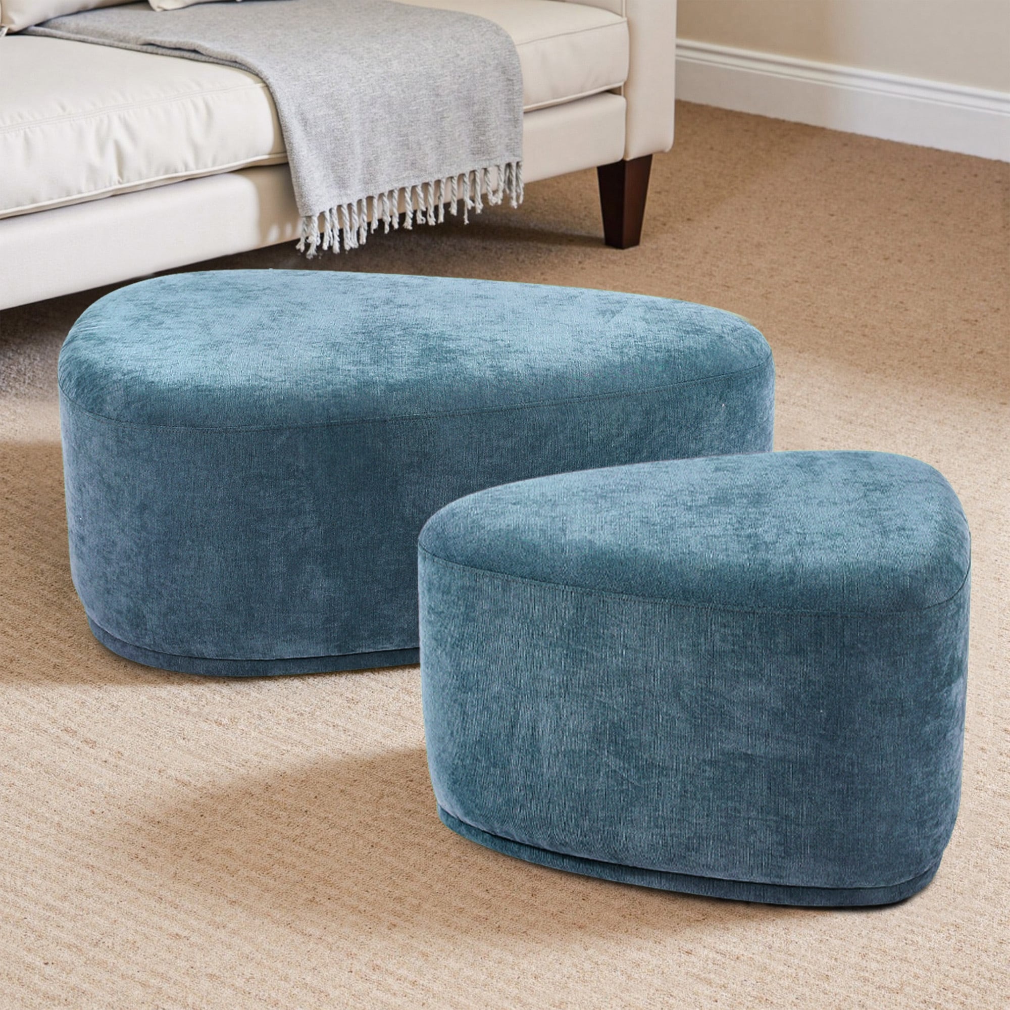 Leon 26"/43" W Chenille Triangle Cocktail Ottoman Set
