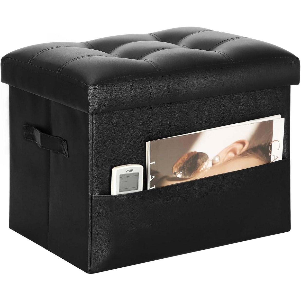 Foldable Storage Ottoman Footrest with Padded Seat, 350 lbs Capacity, 17x13x13in, Black