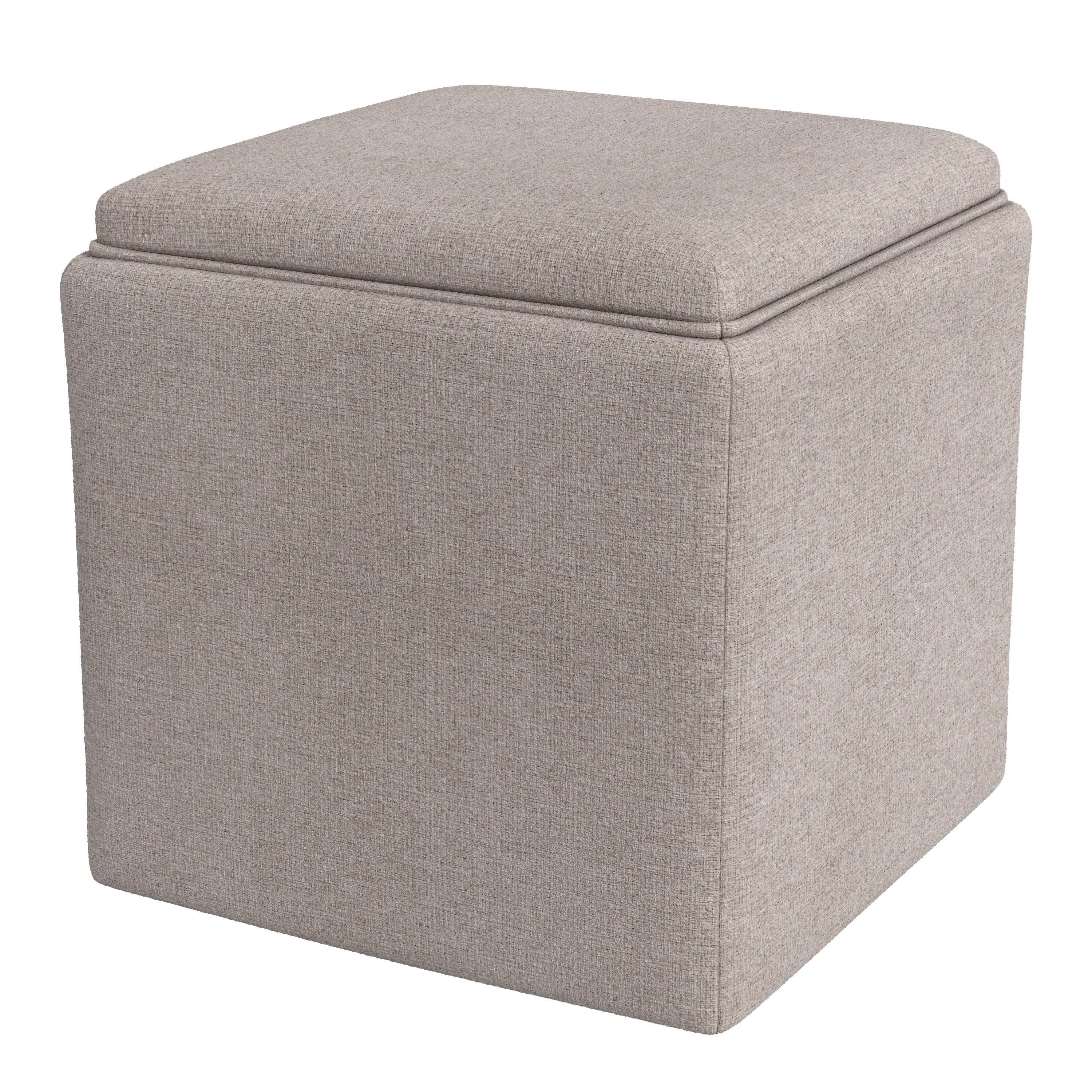 Soa 18 Inch Square Tray-Top Storage Ottoman in Light Brown Woven Fabric