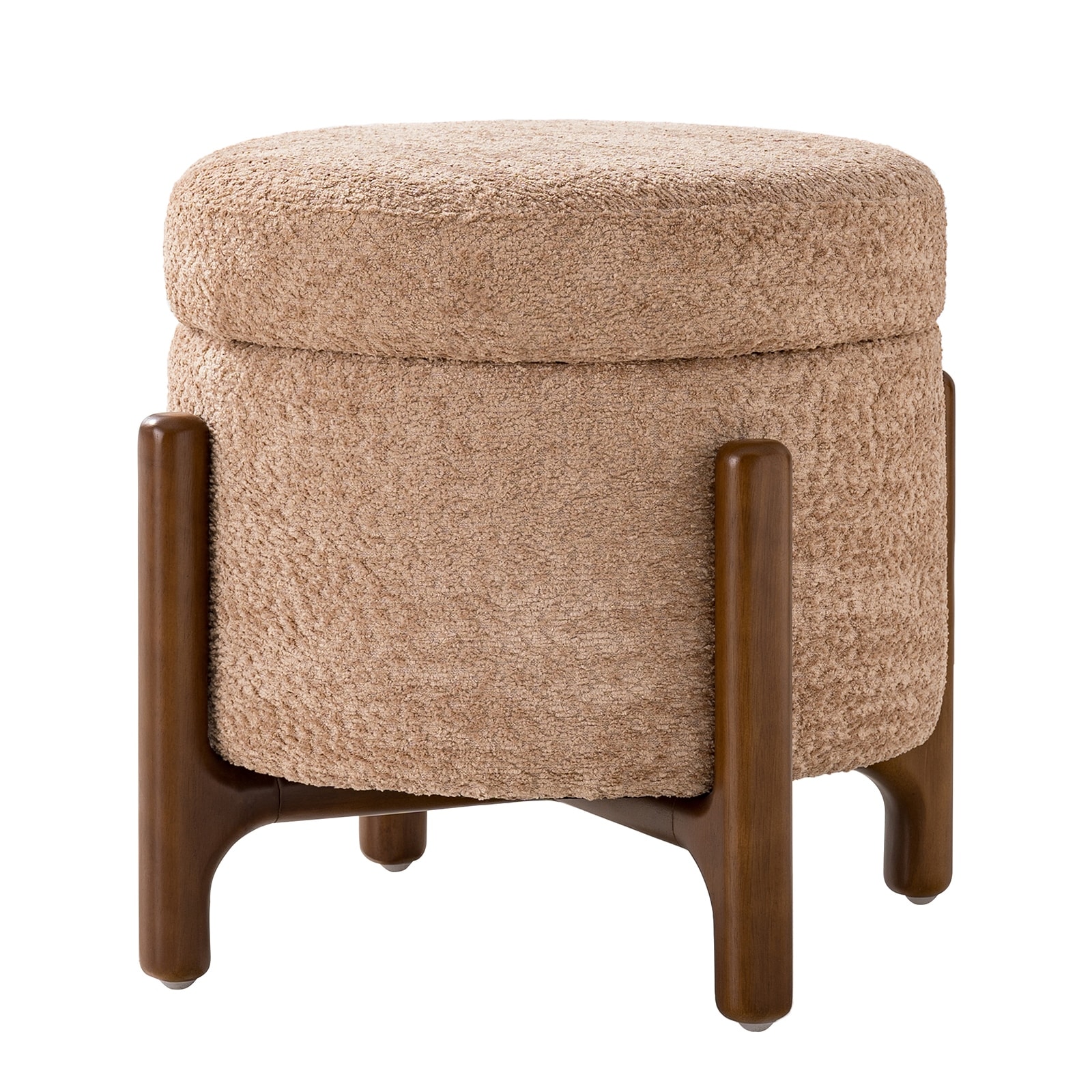 2-Piece Set Round Chenille Storage Ottoman, Equipped with a Drum Shaped Small Stool, Storage Space