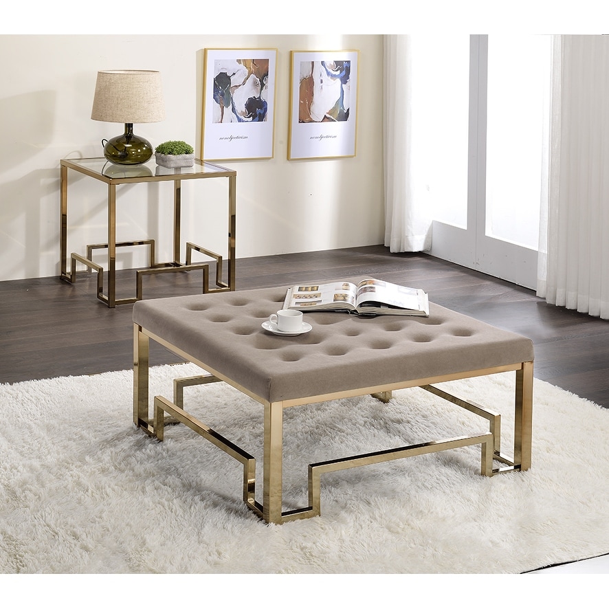 Damien Beige Fabric Cocktail Ottoman with Champagne Finish, Elegant Living Room Piece
