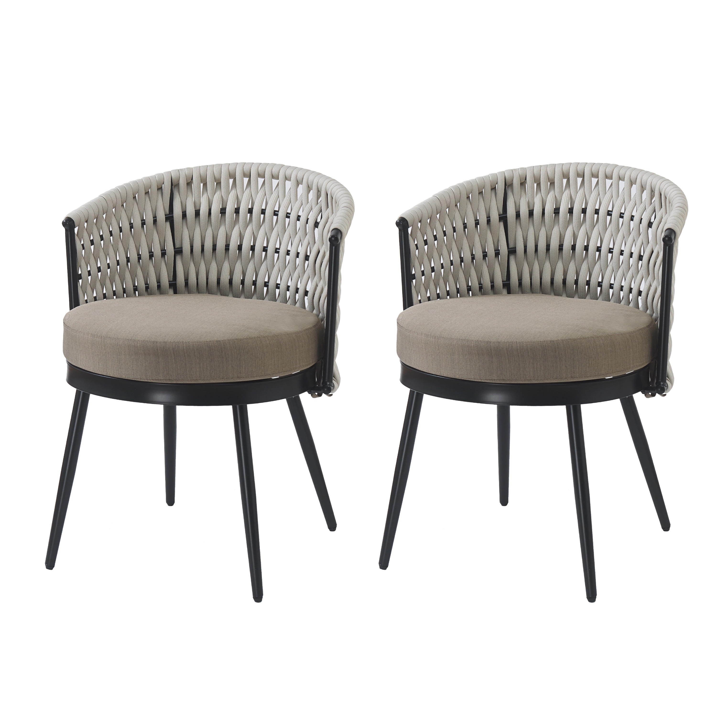 Outdoor Dining Chairs Beige Padded Chairs Set of 2 with Metal Frame, Patio Chair Armchairs Leisure Chairs