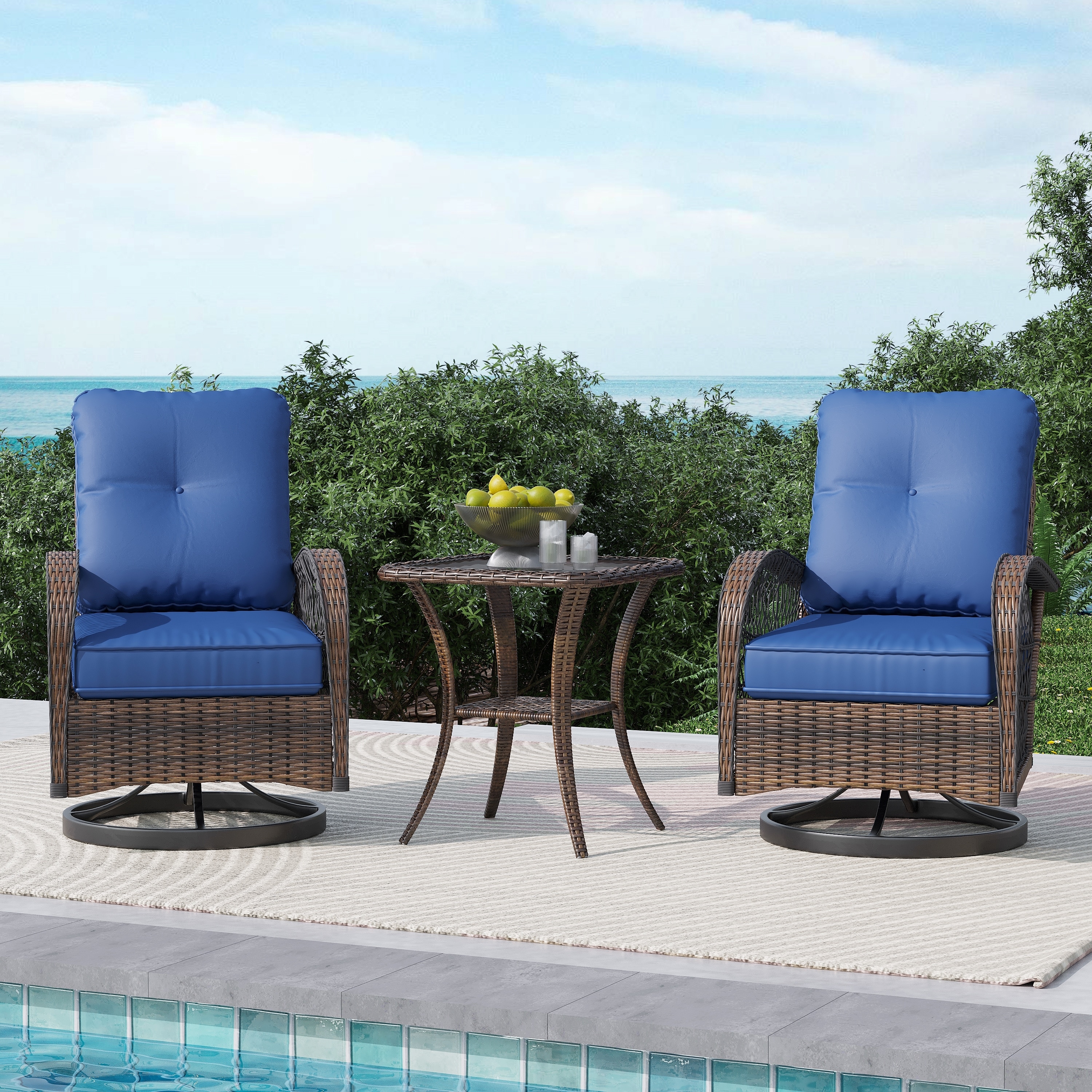 EROMMY Outdoor 3 Pieces Swivel Rocker Patio Chair Sets with Glass Table, All-Weather Wicker & Thickened Cushions for Backyard