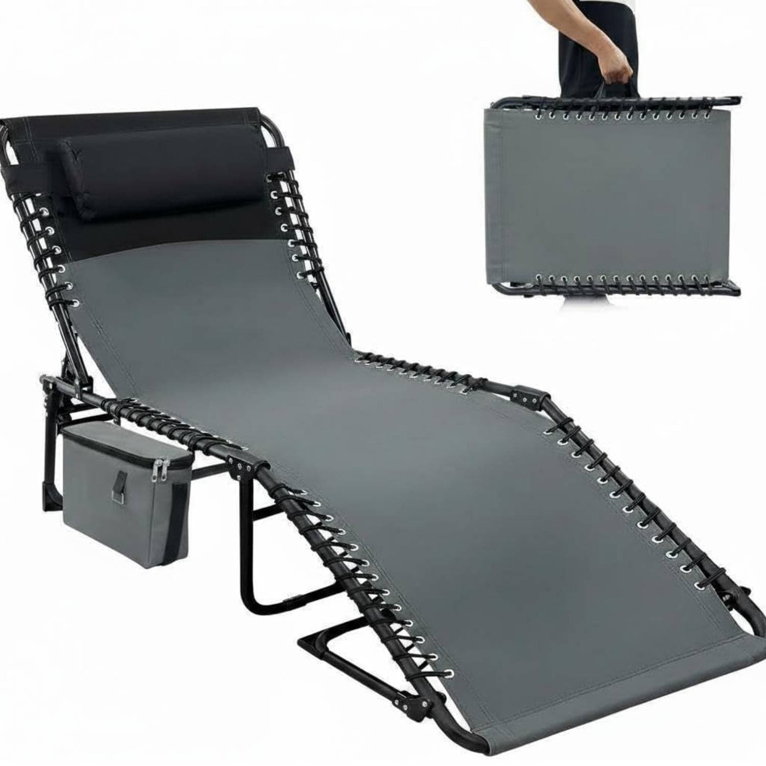 Outdoor Chaise Lounge Chair, Sun Tanning Chair with Carrying Handle for Garden, Beach, Patio