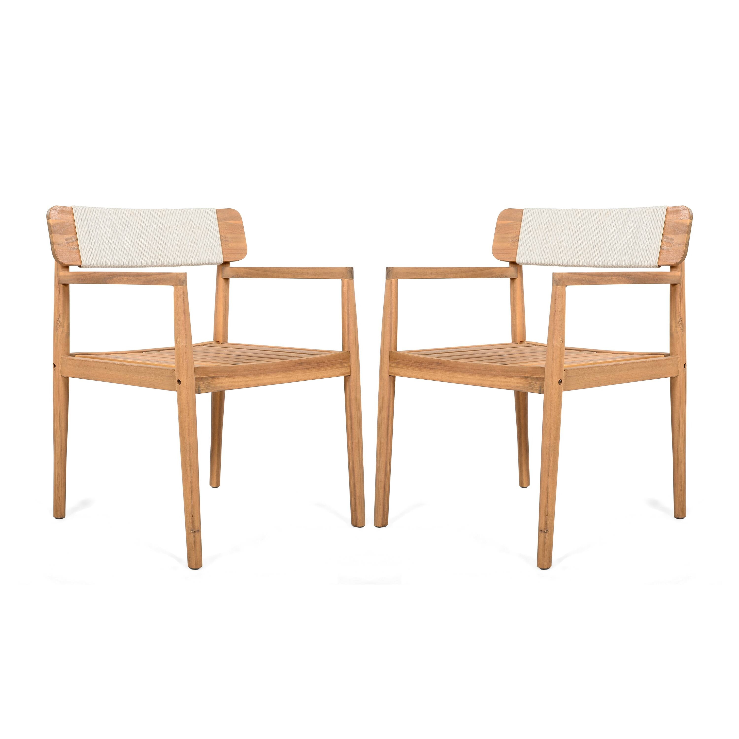 Teak White Dining Chairs Outdoor Armchairs Set of 2 with Wood Frame, Office Chair Reception Chair Side Chair