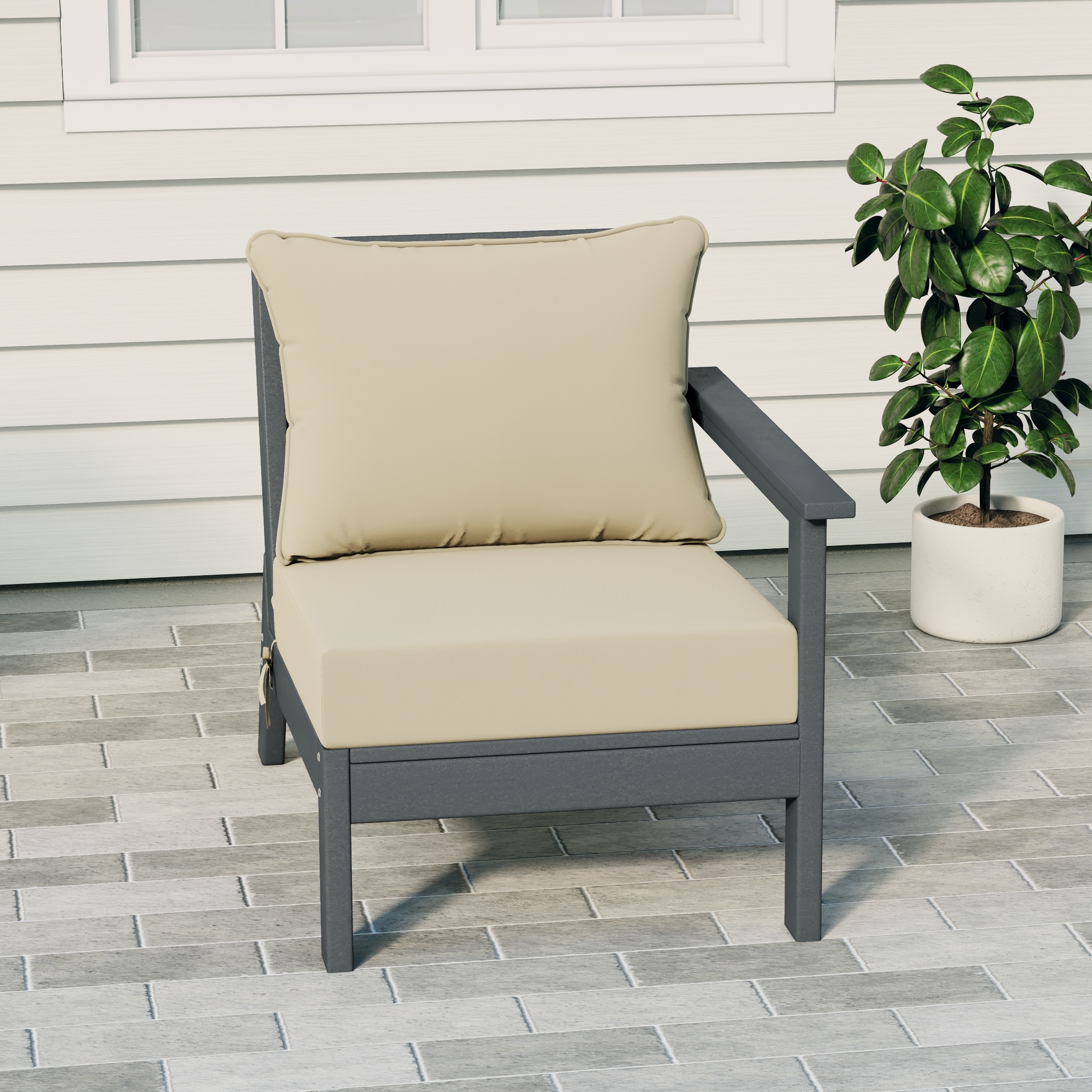 Birchwood All Weather HDPE Outdoor Patio Deep Seating Gray Right Arm Facing Chair With Cushions (1-Piece)
