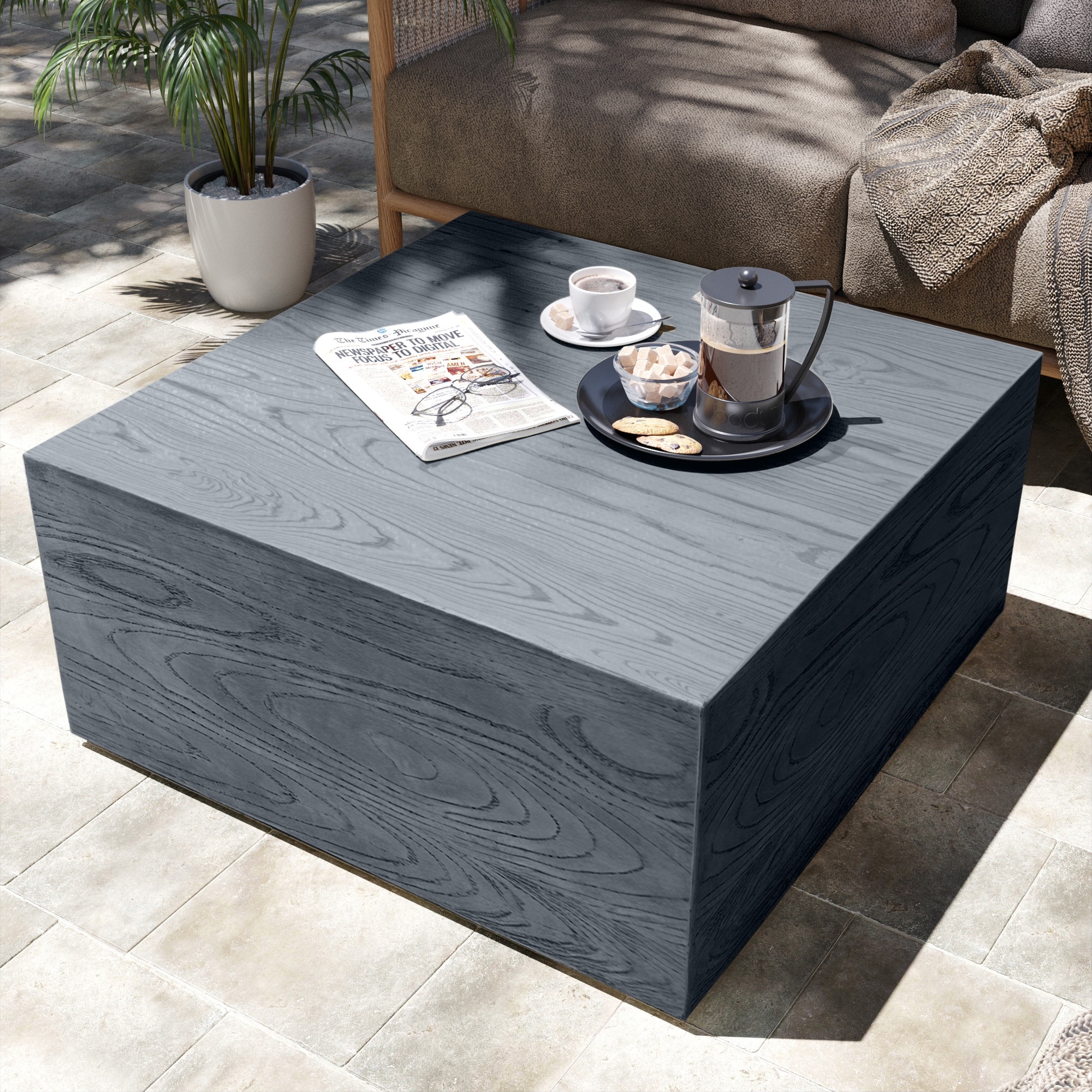 Patio Watcher 28'' Magnesium Oxide Outdoor Coffee Table with Natural Stone Textured Surface - N/A