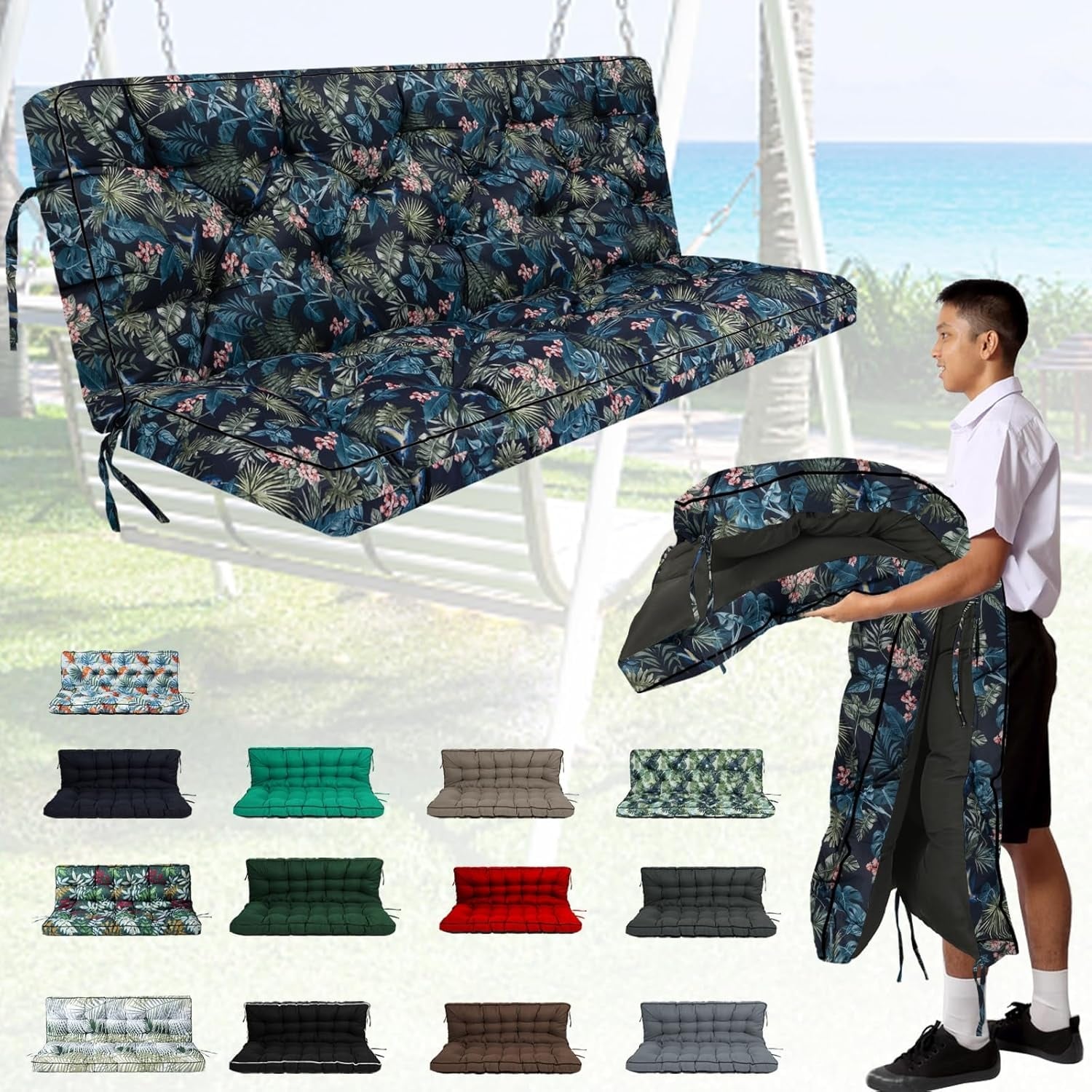 Waterproof Outdoor Porch Swing Cushion with Backrest, Thickened Patio Bench Cushion for 2/3 Seater, 55x40 Inches