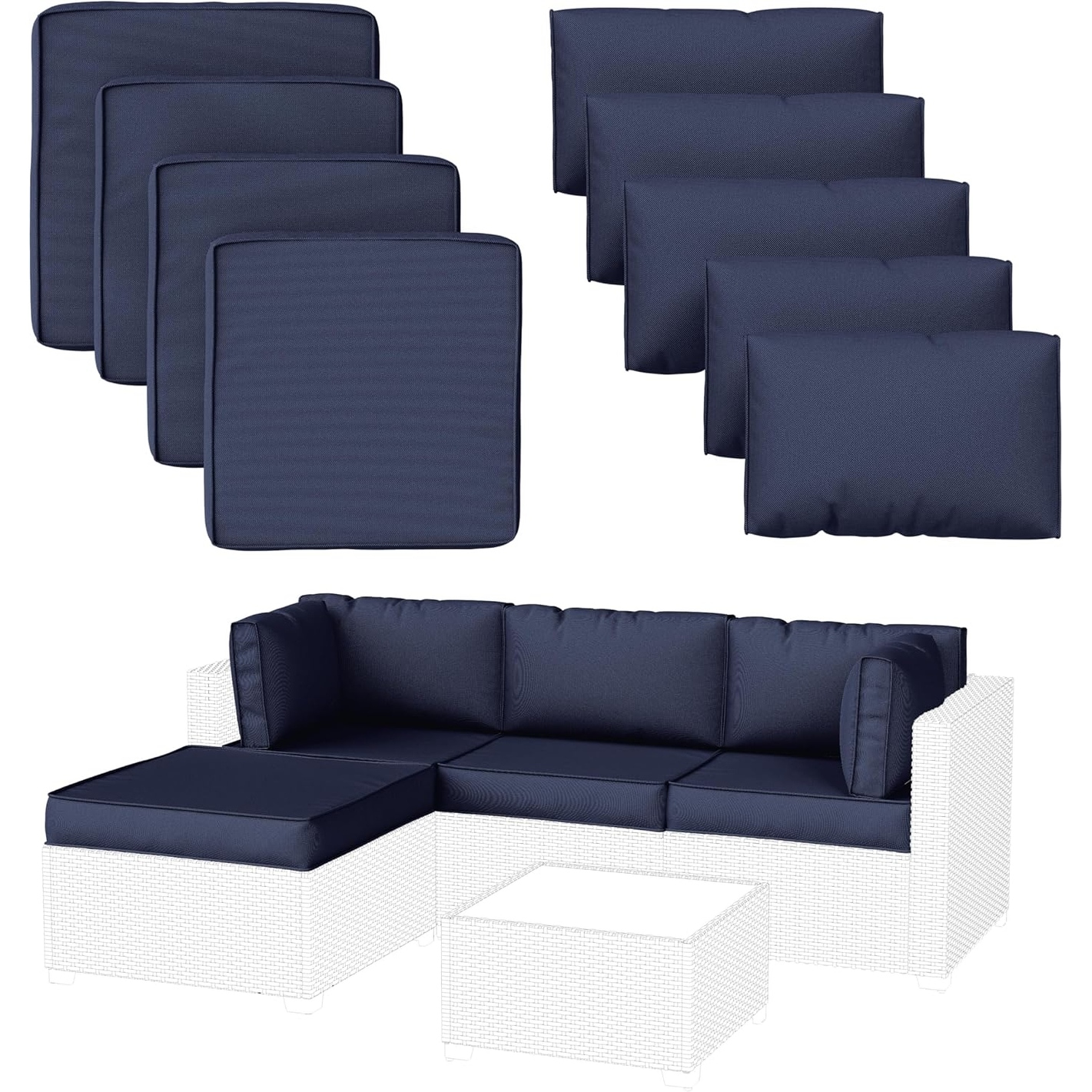 9 Pack Waterproof Outdoor Patio Cushion Covers with Zipper, Navy Blue