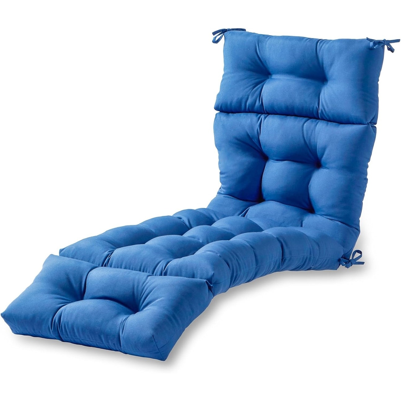 72 x 22-inch Reversible Outdoor Chaise Lounge Cushion, Blue, Heavy-Duty Polyester, Plush Support