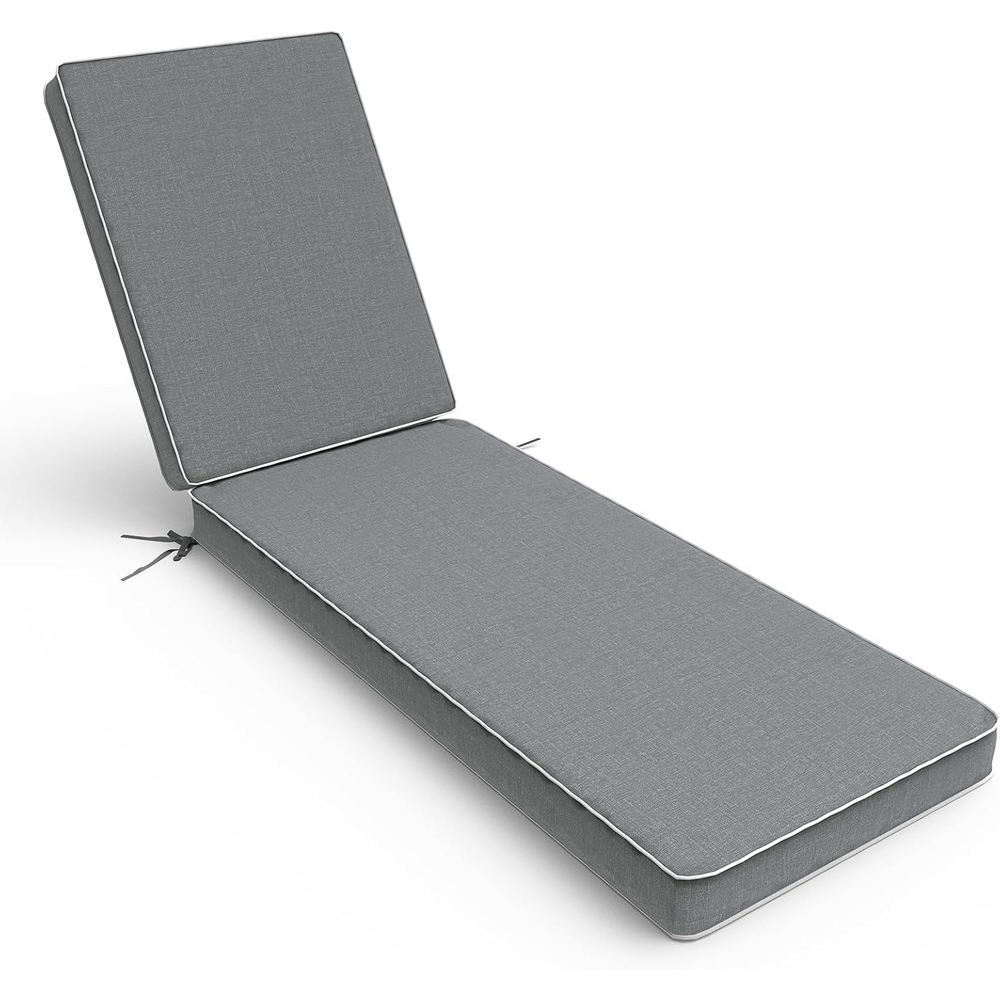 Water Resistant Outdoor Chaise Lounge Cushion with Straps, 72x21x3 Inch, Textured Gray