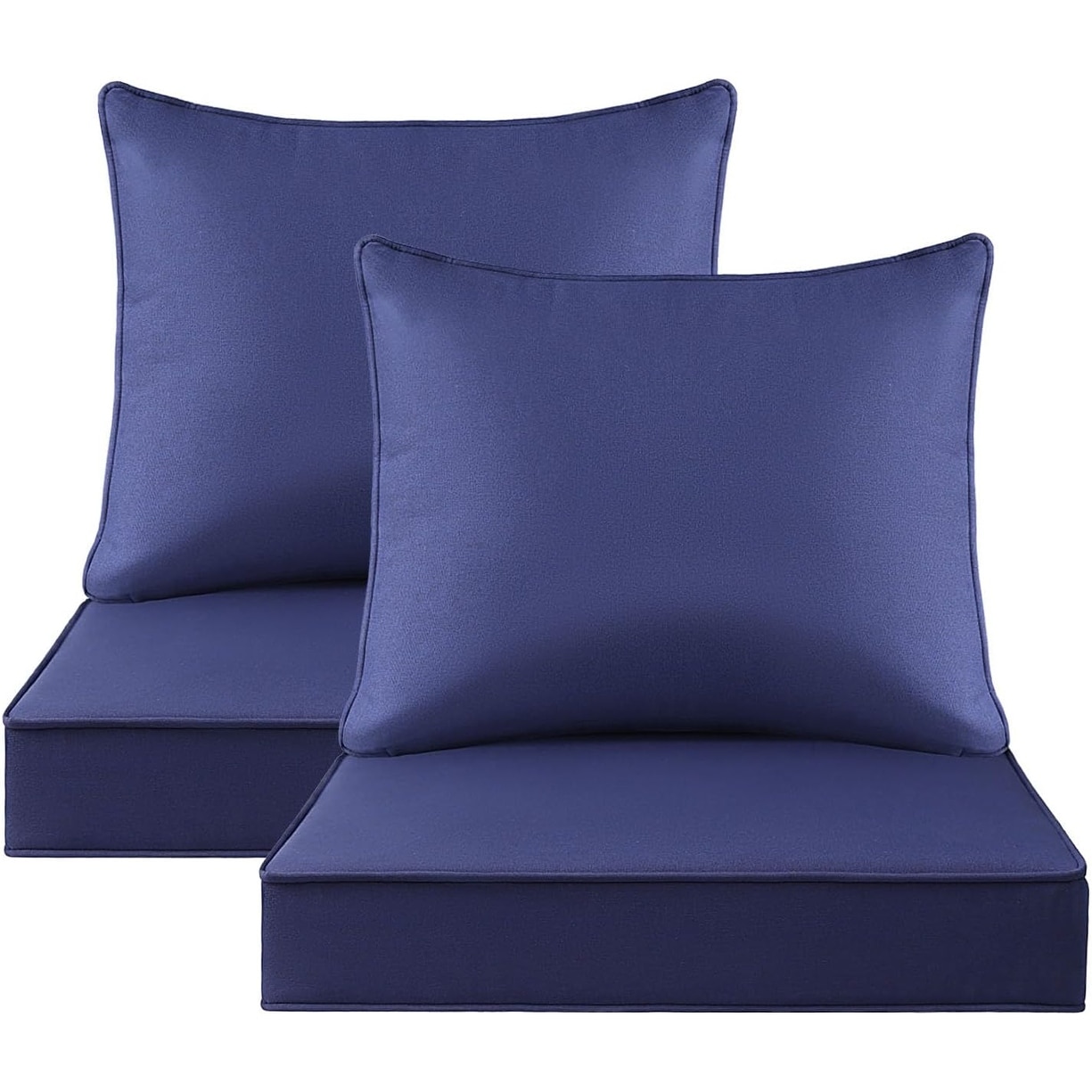 2-Piece Outdoor Patio Chair Cushion Set, 22x22 Inch Water-Repellent Deep Seat Cushions with Back Pillow for Garden, Sofa, Navy