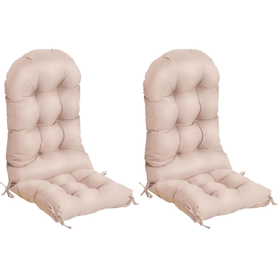 2 Pack High Back Adirondack Chair Cushions with Ties, Waterproof and Non-Slip, Beige