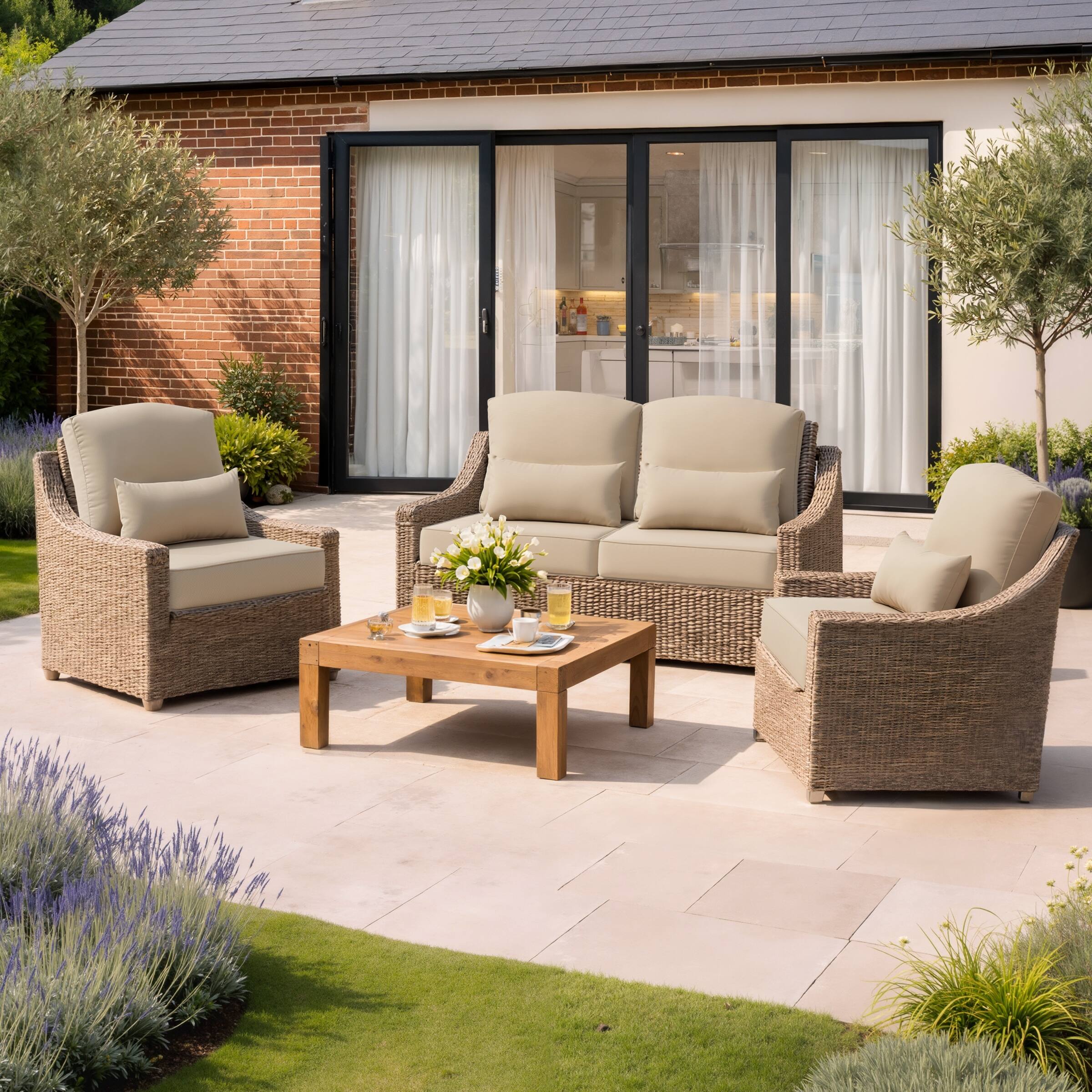 Outdoor Seat Cushion Set 24 x 24 Inch Patio Furniture Cushions Deep Seat & Back Cushion with Pillow for Chair Sofa