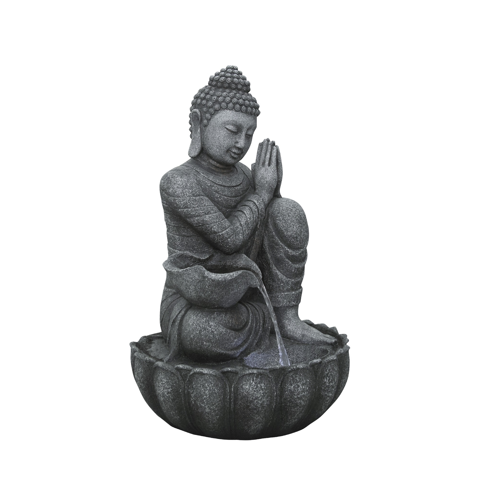 Alpine Corporation WIN1170 Outdoor Floor Calming Buddha Statue Waterfall Fountain with Realistic Stone Look, 53", Gray
