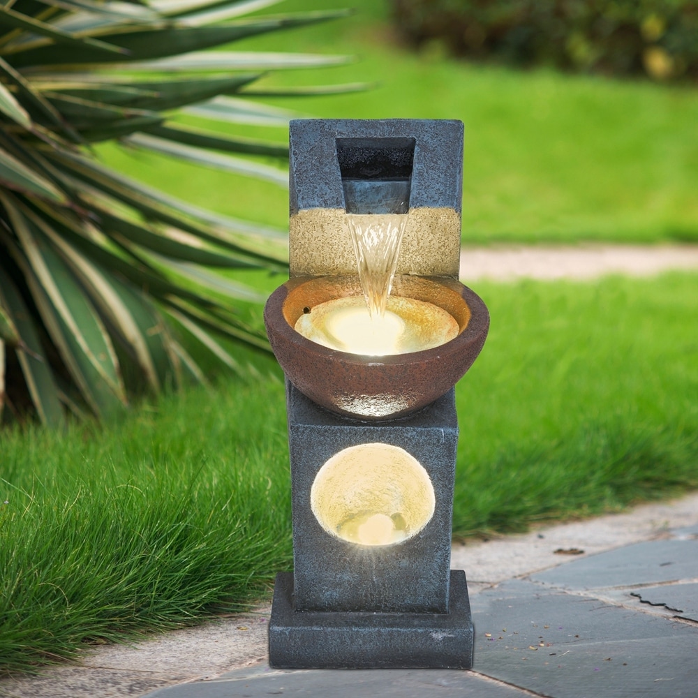 9.4x9.1x23.8" Indoor and Outdoor Sculptural Water Fountain with Bowl Basin, with Light and Pump
