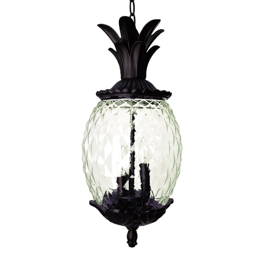 Black and Clear Metal Glass Pineapple Outdoor Hanging Lantern, Dimmable - 9.5” W x 9.5” D x 21” H