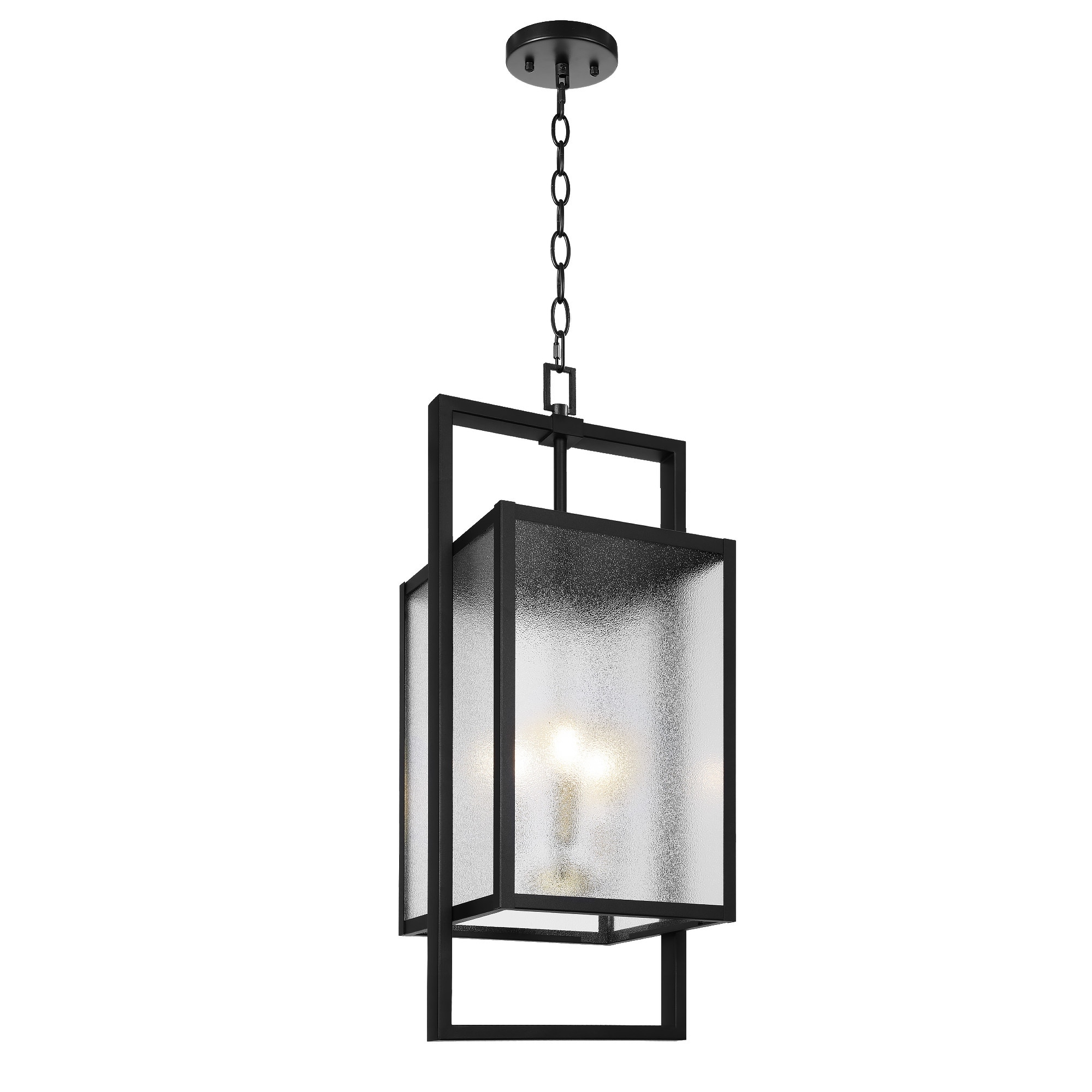 Matte Black Outdoor Lantern Pendant Light with Three Bulbs - 9.5" x 9.5" x 19.5"