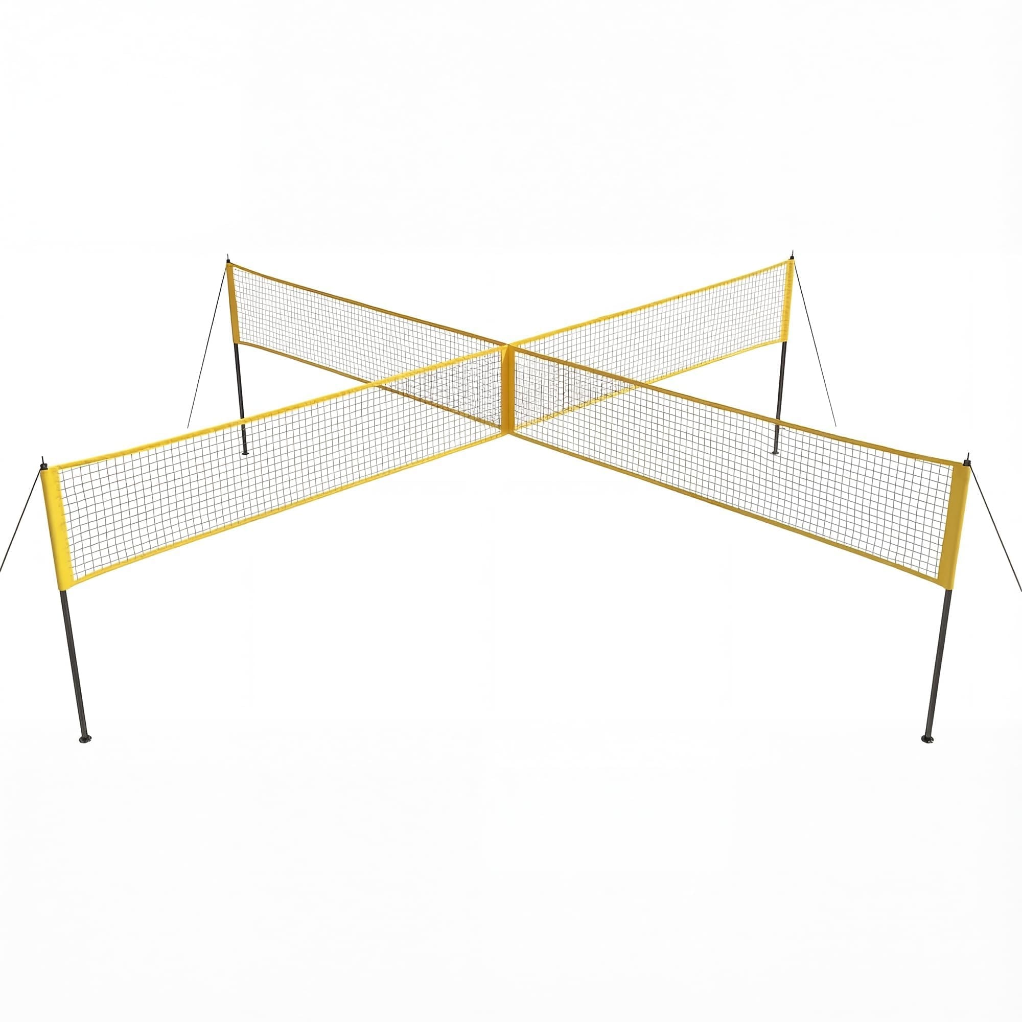 14FT 4-Square Volleyball Net Set with Adjustable Heights, Ball, Pump & Bag – Backyard, Beach, Outdoor Play.