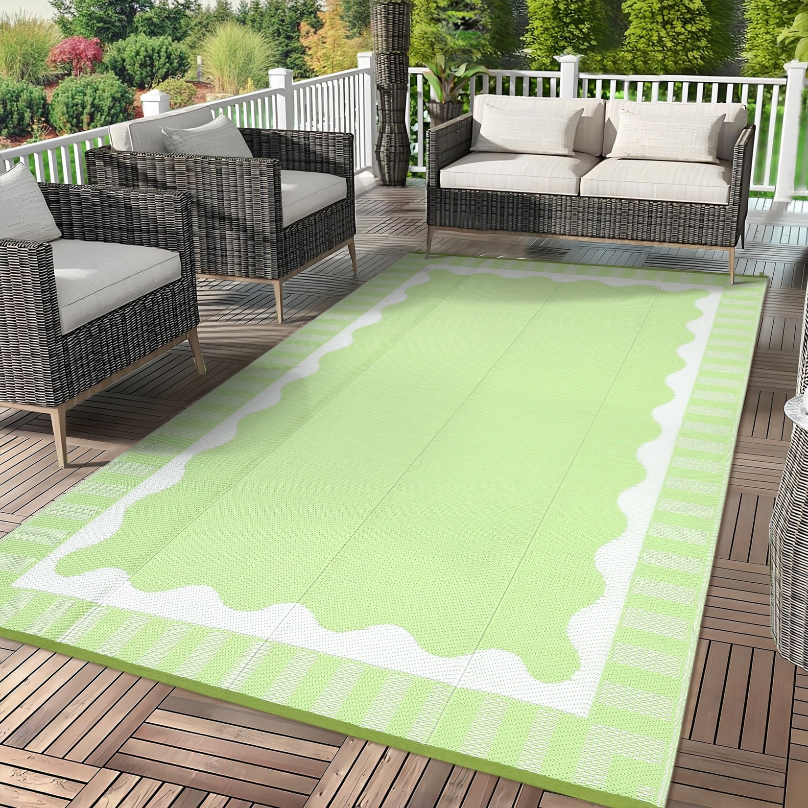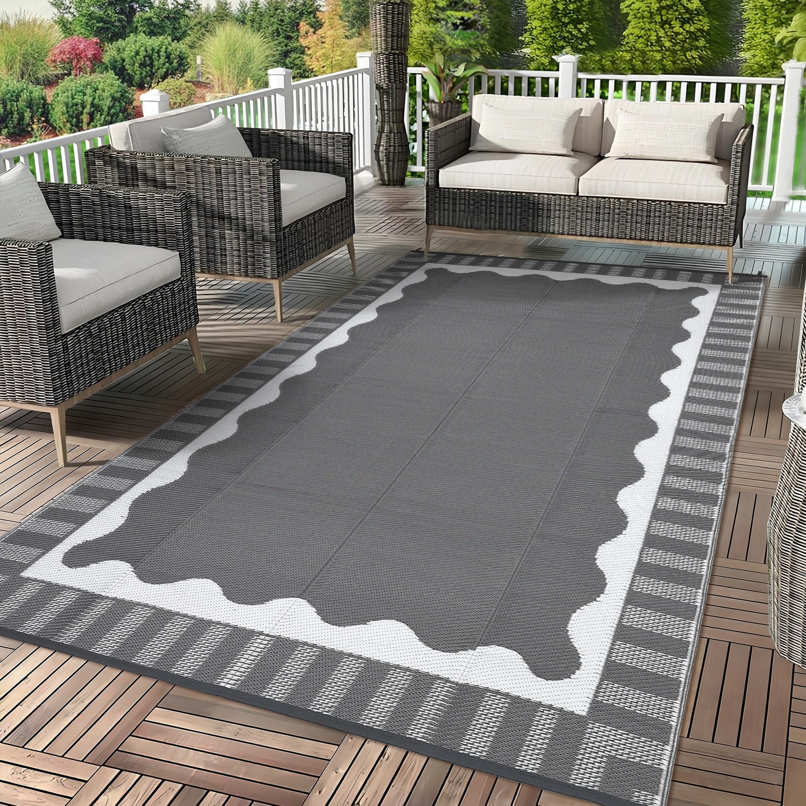 Garvee Outdoor Rug Modern Border Rug Waterproof Reversible Plastic Straw Rugs for Patio Balcony Porch Camping