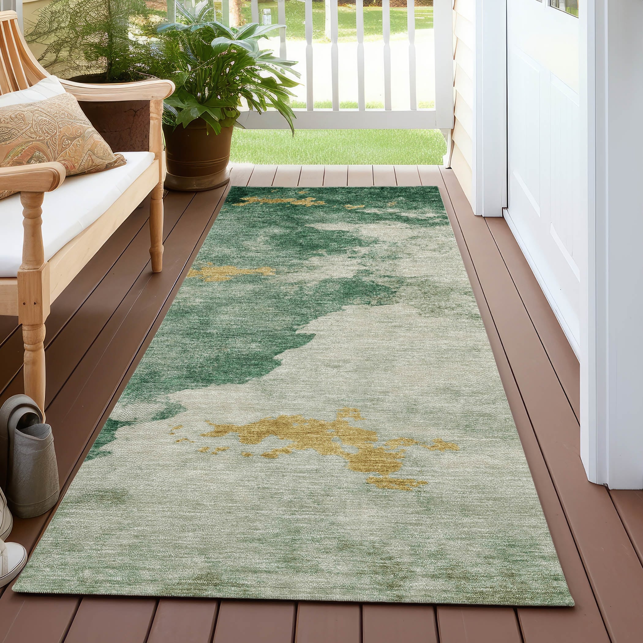 Machine Washable Indoor/ Outdoor Abstract Contemporary Chantille Rug