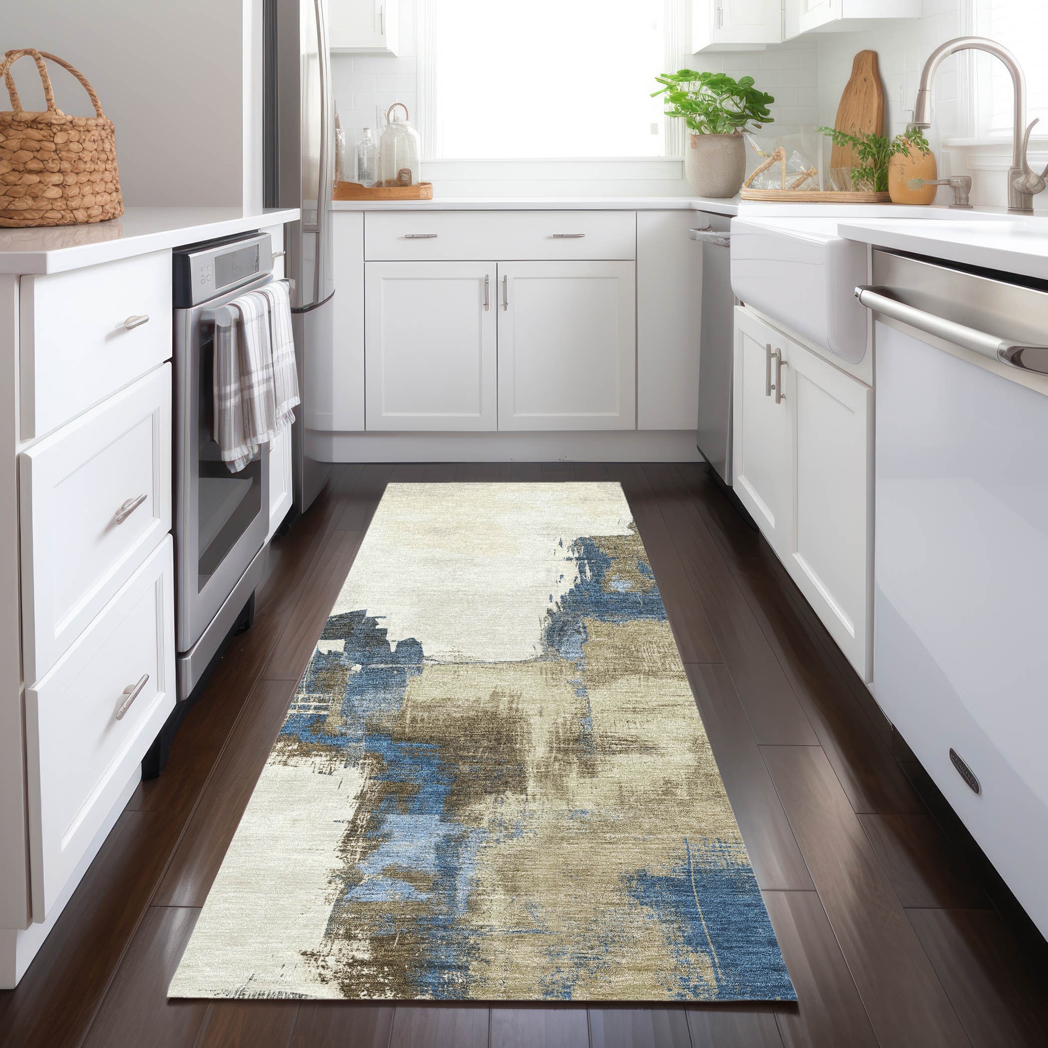 Machine Washable Indoor/ Outdoor Abstract Tide Chantille Rug