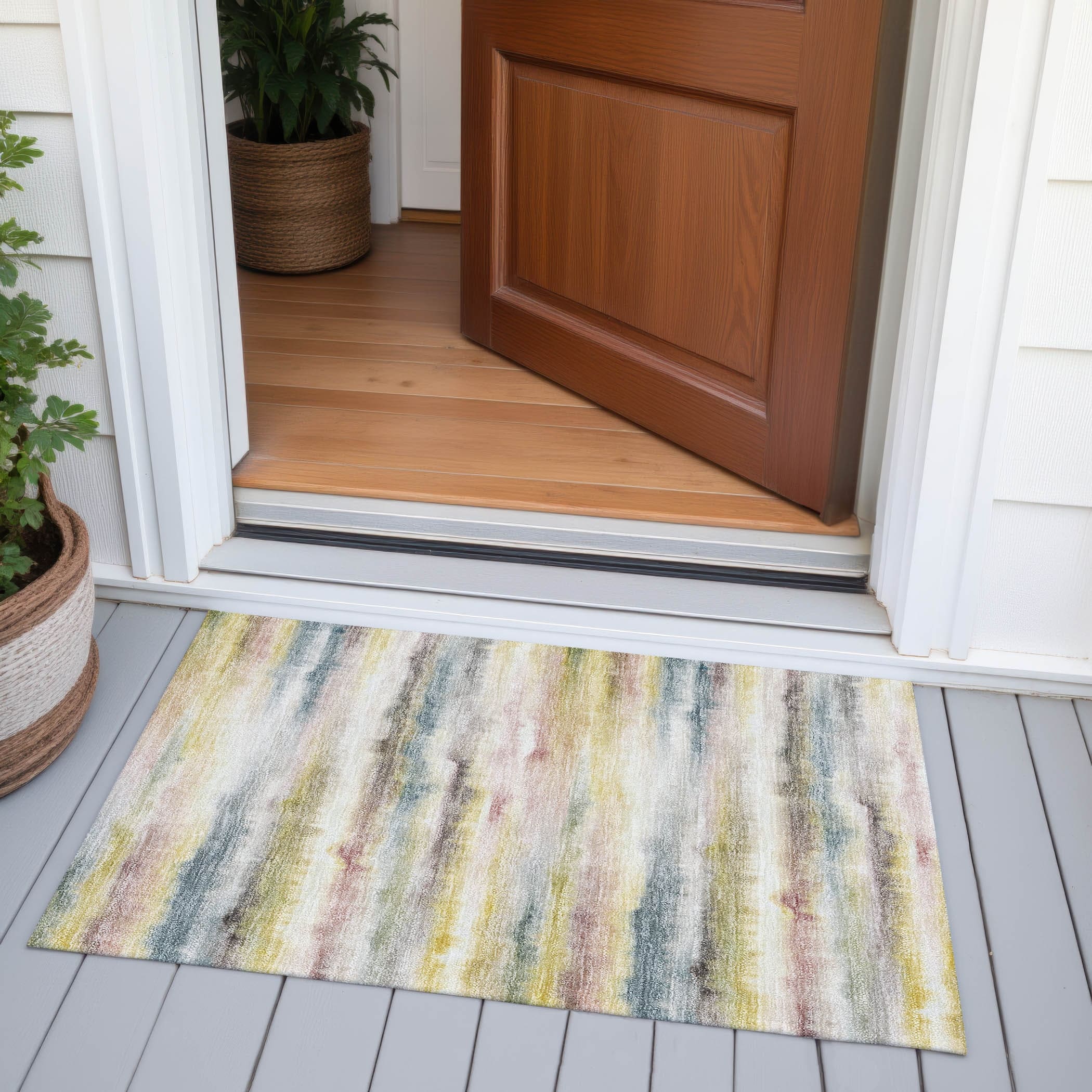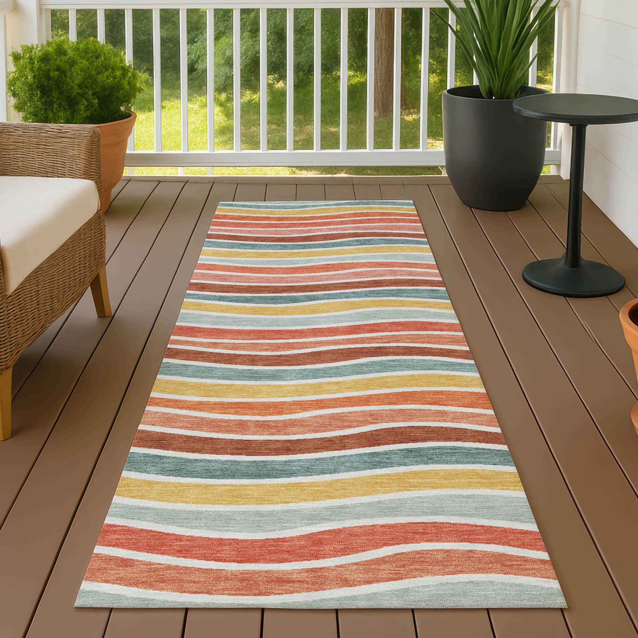 Machine Washable Indoor/ Outdoor Contemporary Stripe Chantille Rug