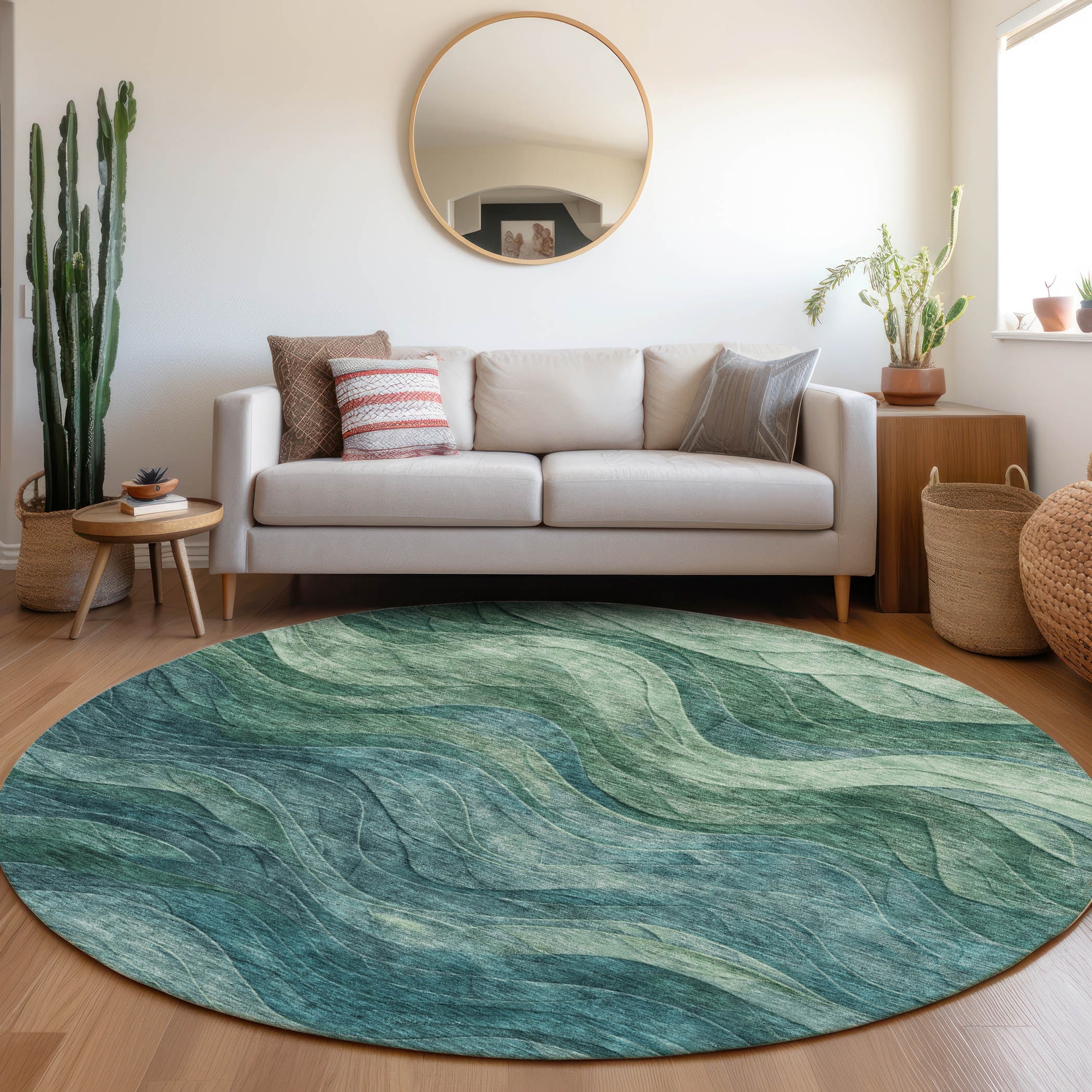 Machine Washable Indoor/ Outdoor Abstract Waves Chantille Rug