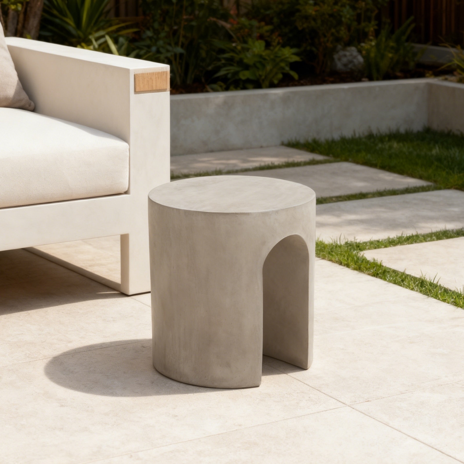 Roomfitters Sirius Concrete Side Table, Modern Round Outdoor Accent Table with Cutout Design, Grey - Gray