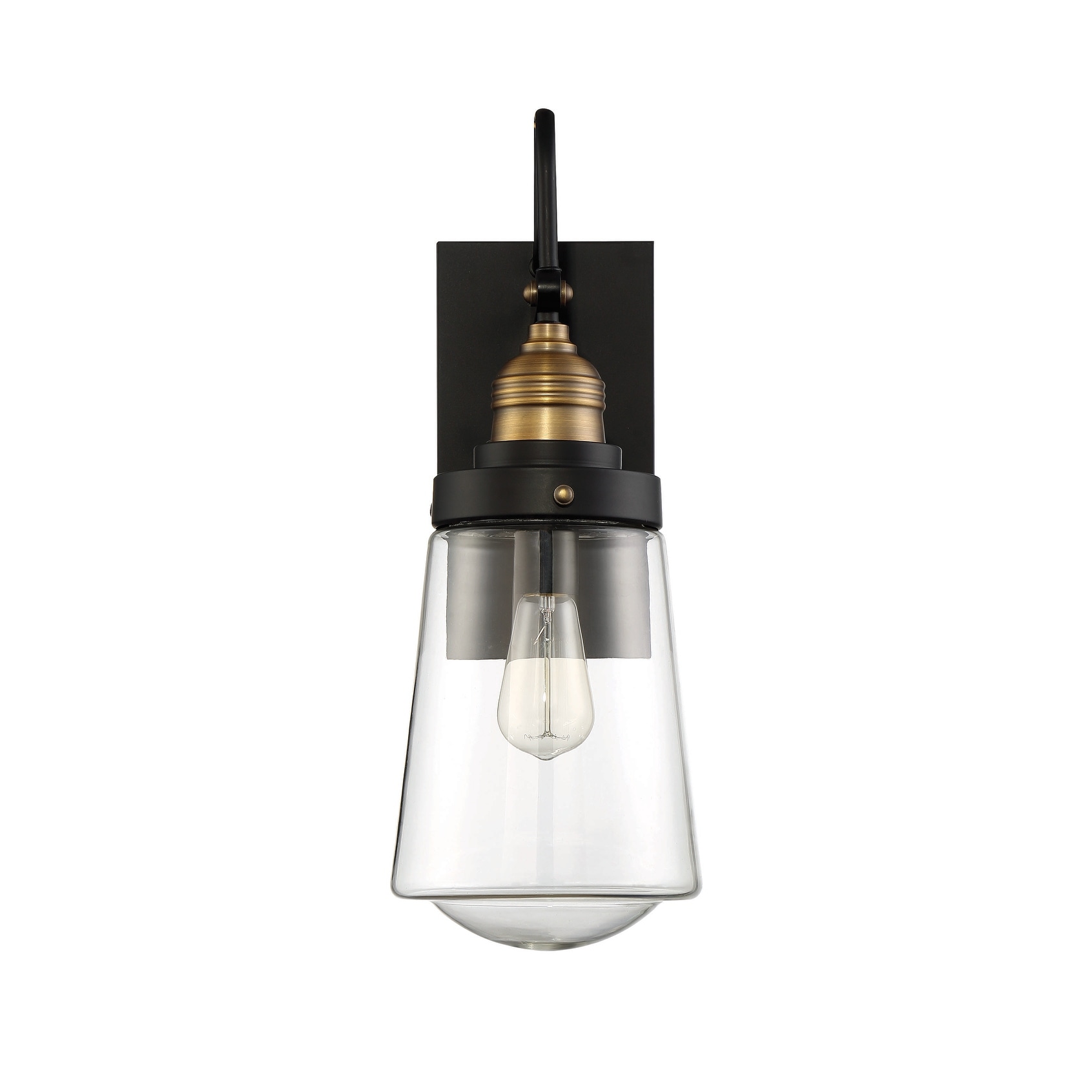 Macauley 1-Light Outdoor Wall Lantern in Vintage Black with Warm Brass