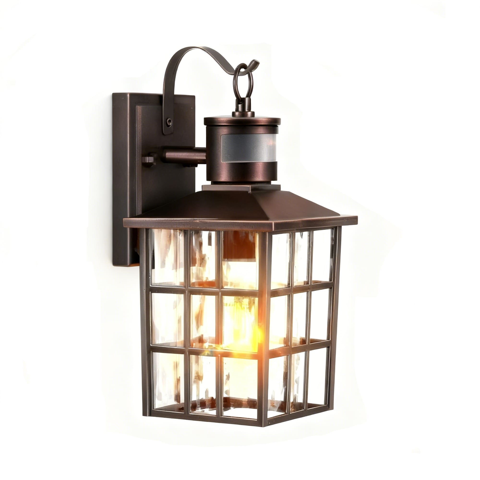 12 in. Matte Black 1-Light Motion Sensing Outdoor Wall Sconce with Dusk to Dawn and Water Wave Glass Shade