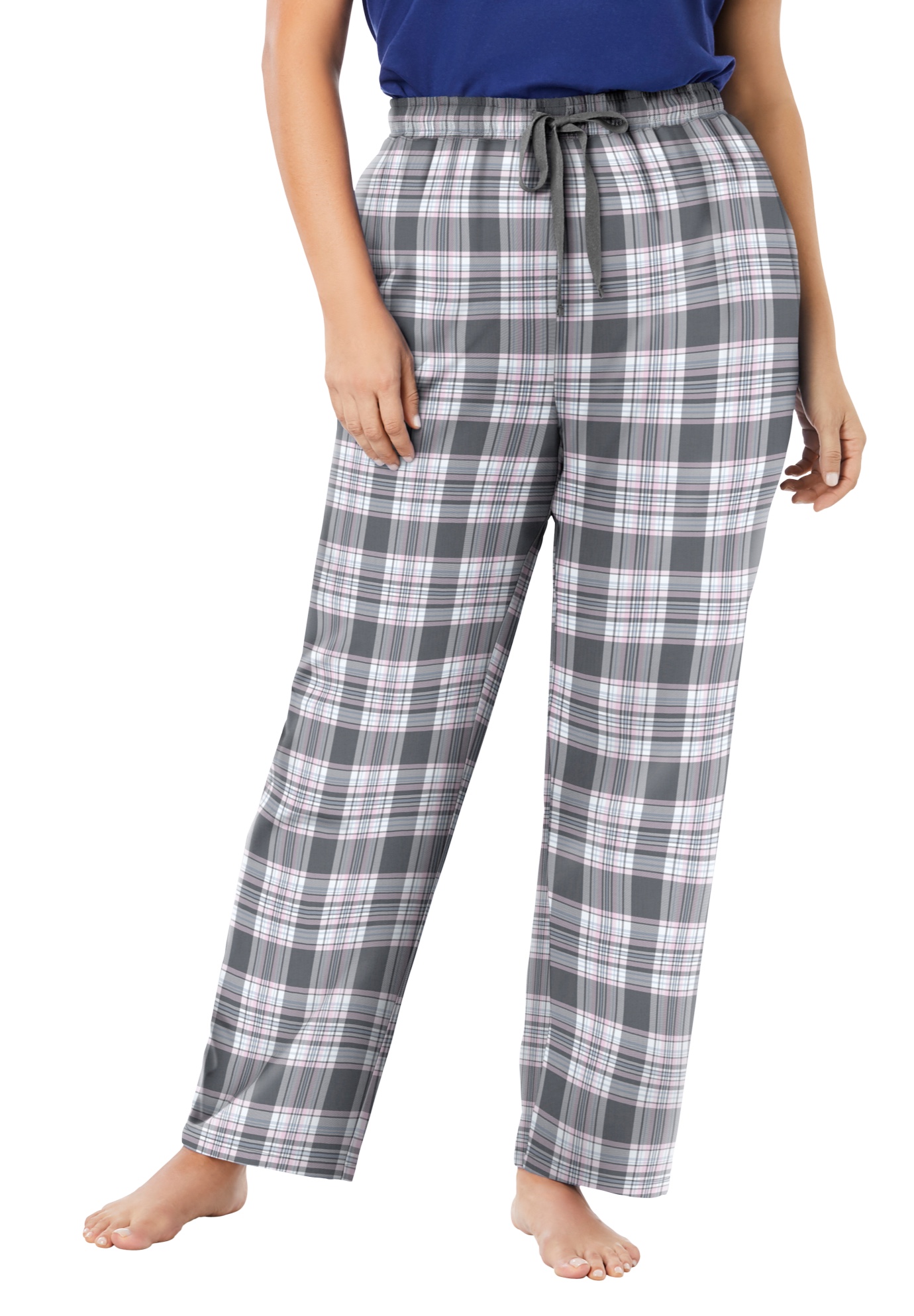Plus Size Women's Cotton Flannel Pants by Dreams & Co. in Pink Plaid (Size 26/28) Pajama Bottoms