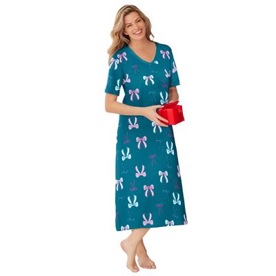 Plus Size Women's Long Print Sleepshirt by Dreams & Co. in Deep Teal Bows (Size 3X/4X) Nightgown