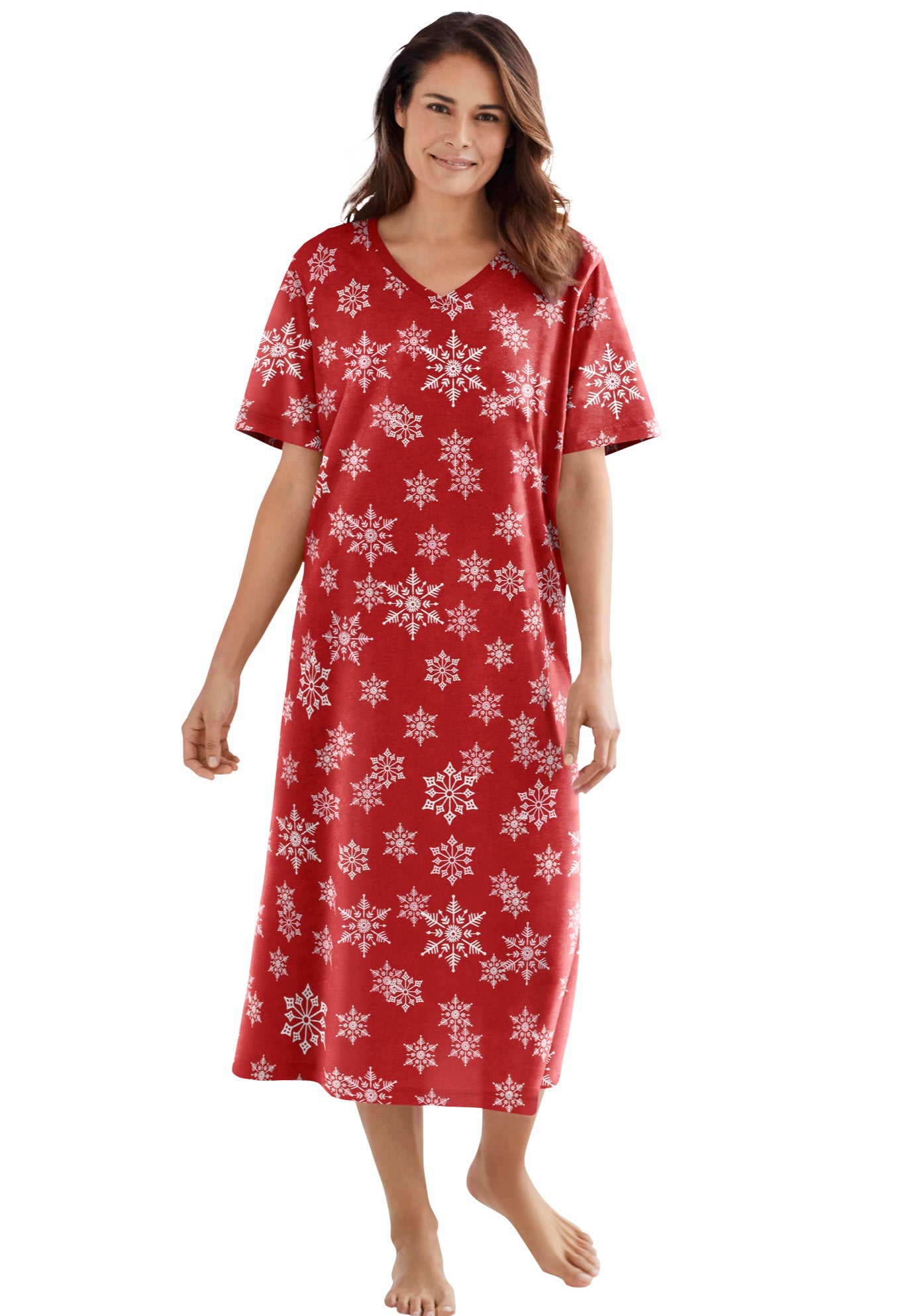 Plus Size Women's Long Print Sleepshirt by Dreams & Co. in Classic Red Winter Snow (Size 7X/8X) Nightgown