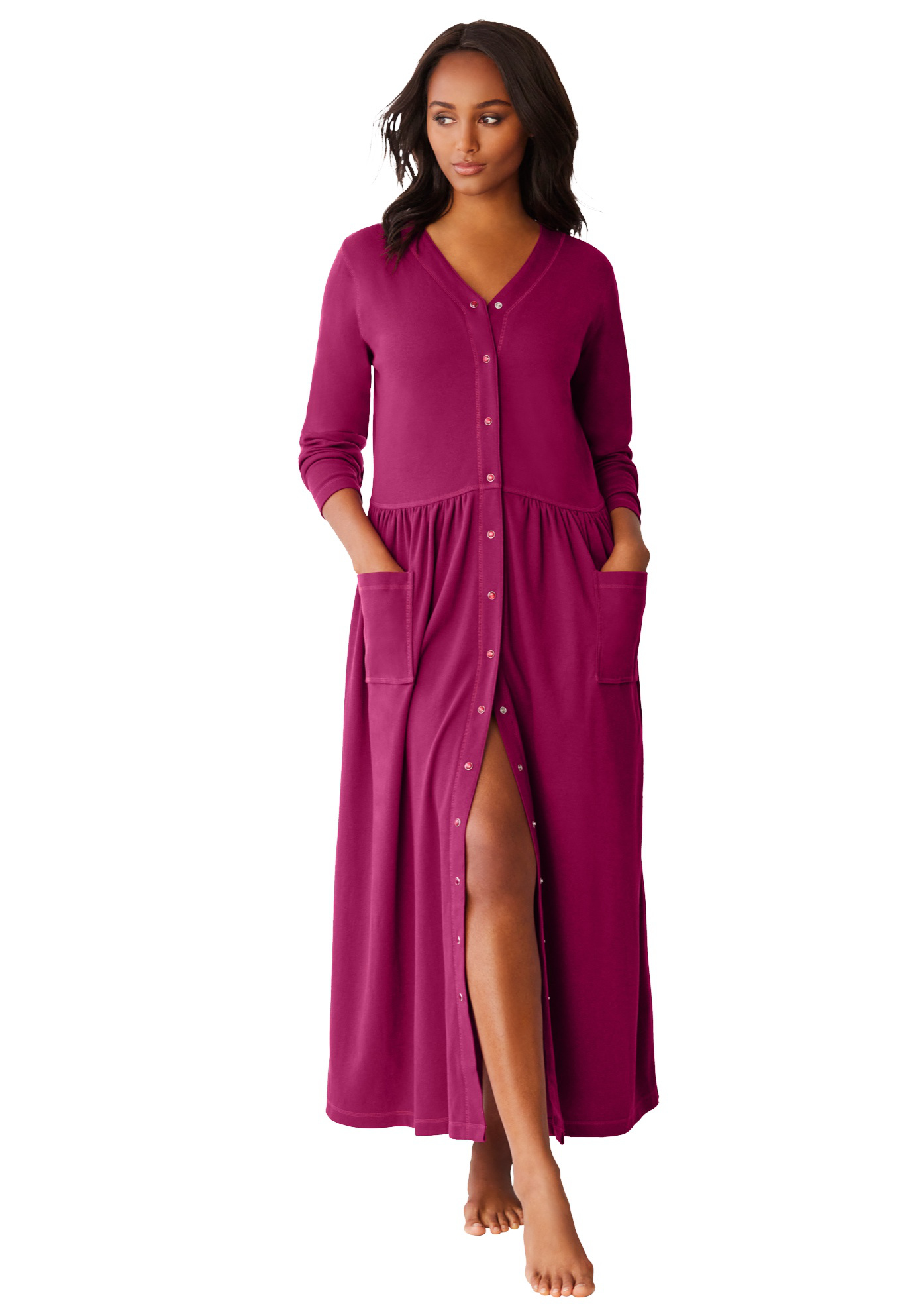 Plus Size Women's Long Snap-Front Knit Lounger by Only Necessities in Pomegranate (Size 1X)