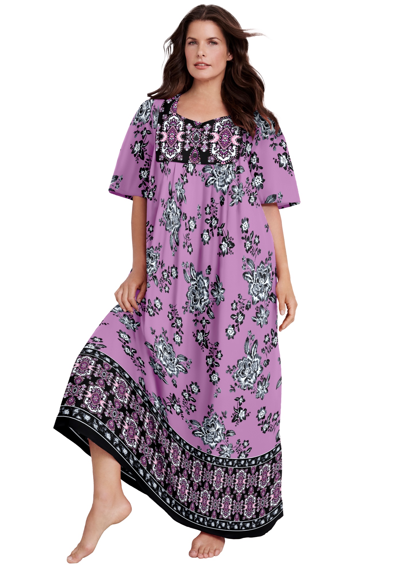 Plus Size Women's Sweeping Printed Lounger by Only Necessities in Black Floral (Size 18/20)
