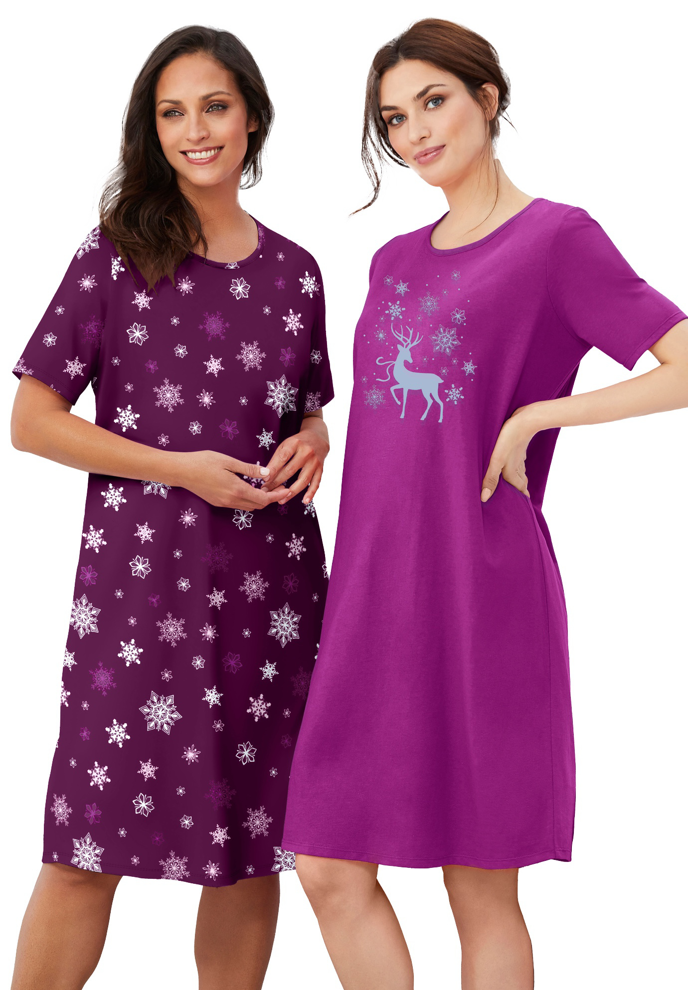 Plus Size Women's 2-Pack Short-Sleeve Sleepshirt by Dreams & Co. in Dark Berry Snowflake (Size 5X/6X) Nightgown