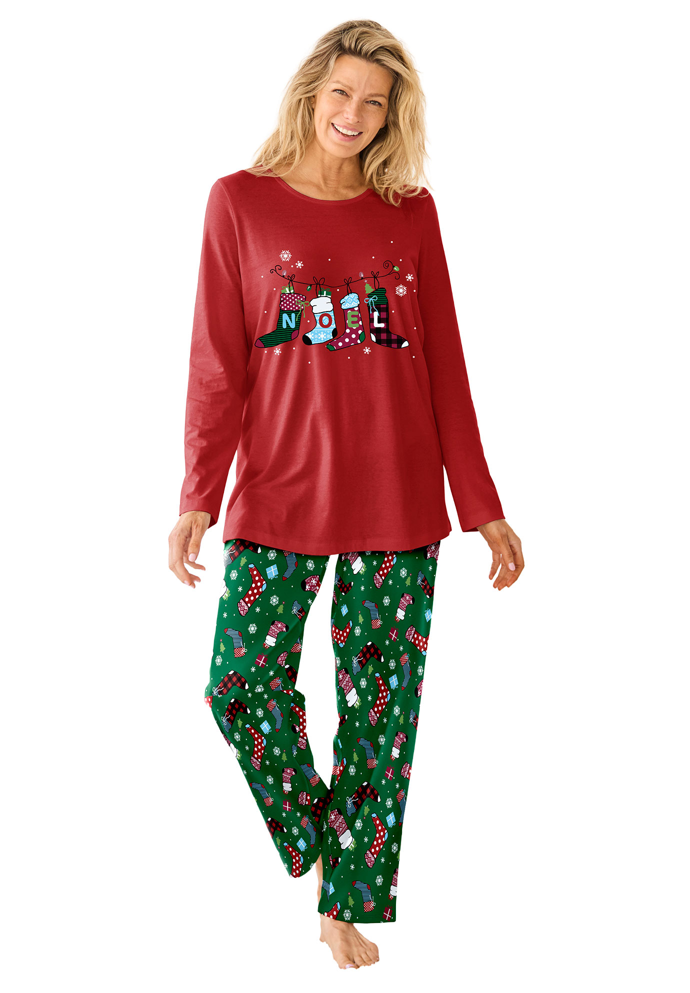 Plus Size Women's Dreams & Co.® Mens Pajama Set by Dreams & Co. in Emerald Stocking (Size 42/44)