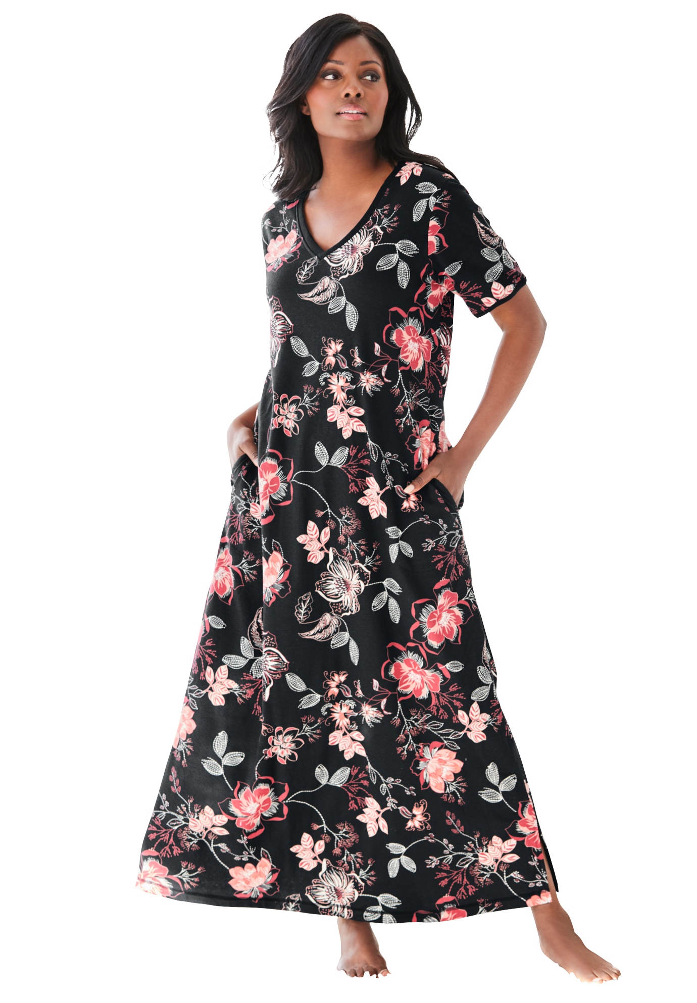 Plus Size Women's Long T-Shirt Lounger by Dreams & Co. in Black Bouquet (Size 7X)