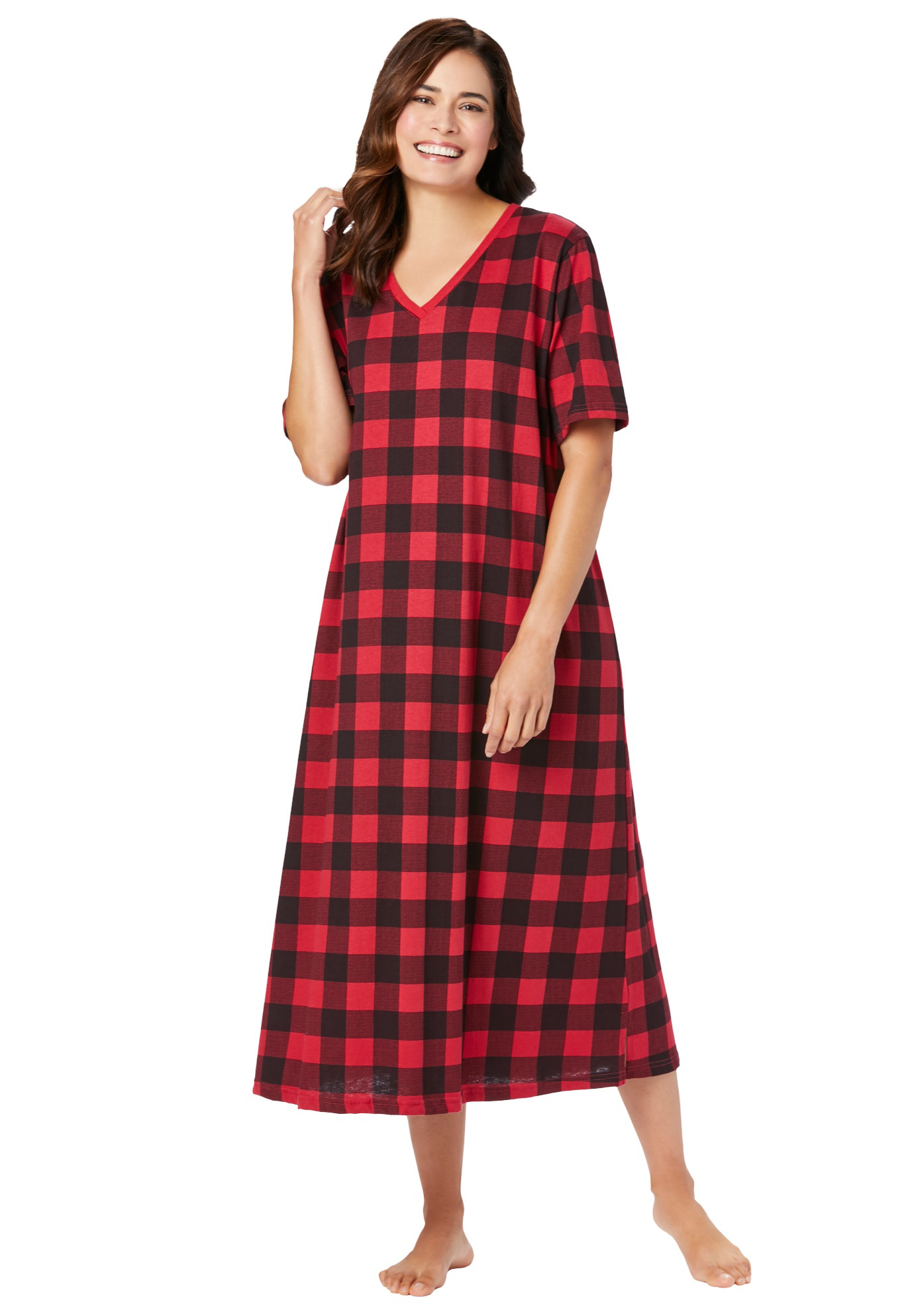 Plus Size Women's Long Print Sleepshirt by Dreams & Co. in Red Buffalo Plaid (Size 7X/8X) Nightgown