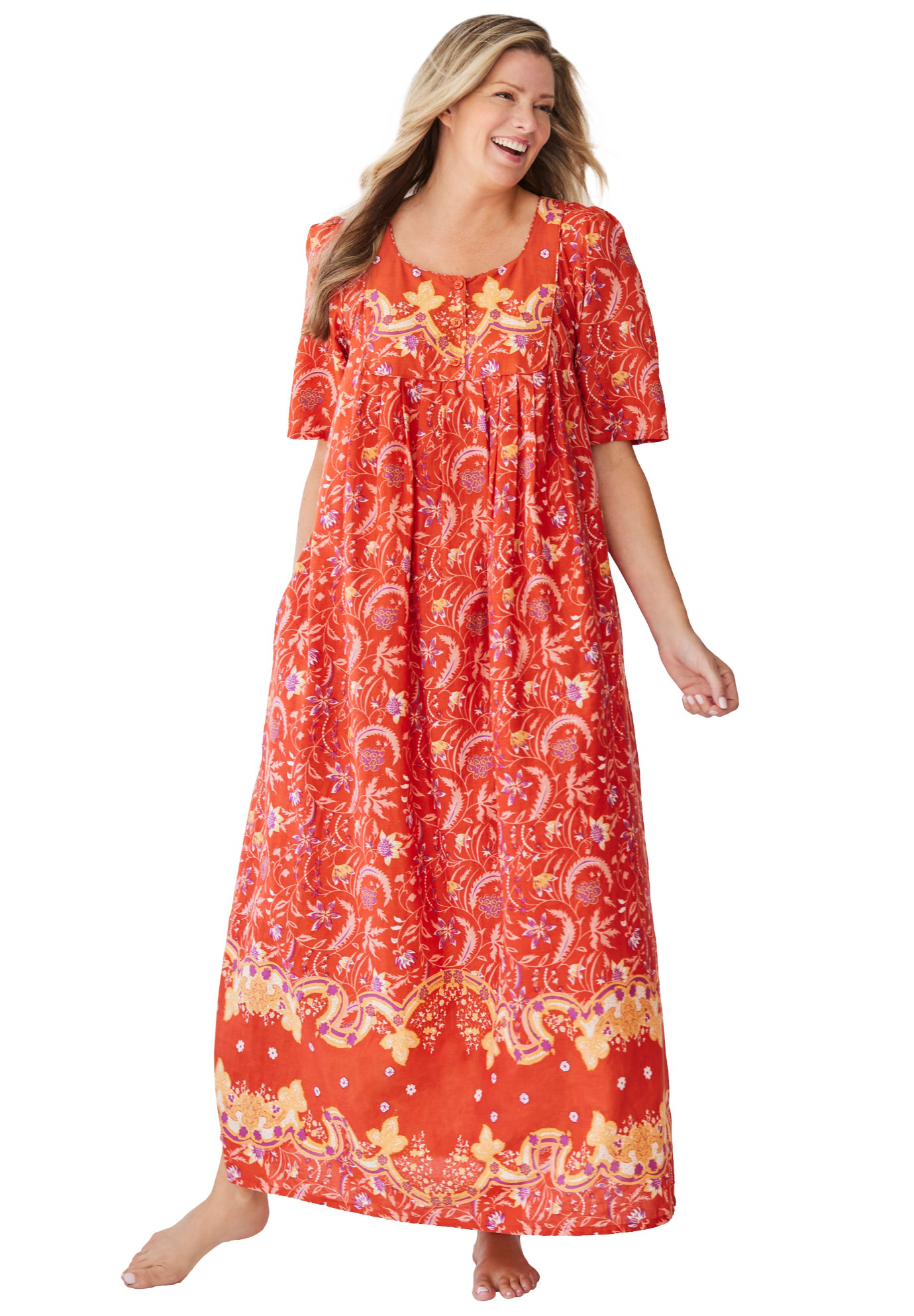 Plus Size Women's Bib Front Lounger by Only Necessities in Paprika Folk Floral (Size L)