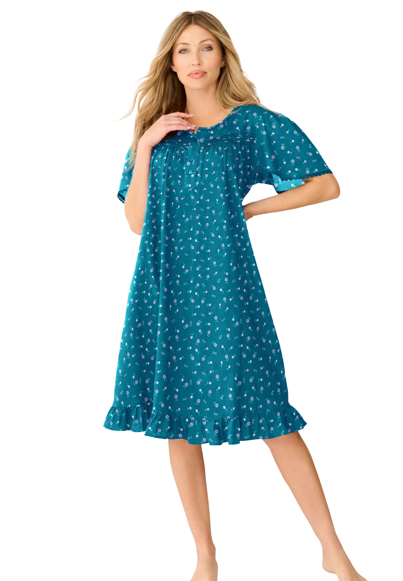 Plus Size Women's Short Floral Print Cotton Gown by Dreams & Co. in Deep Teal Ditsy (Size 5X) Pajamas