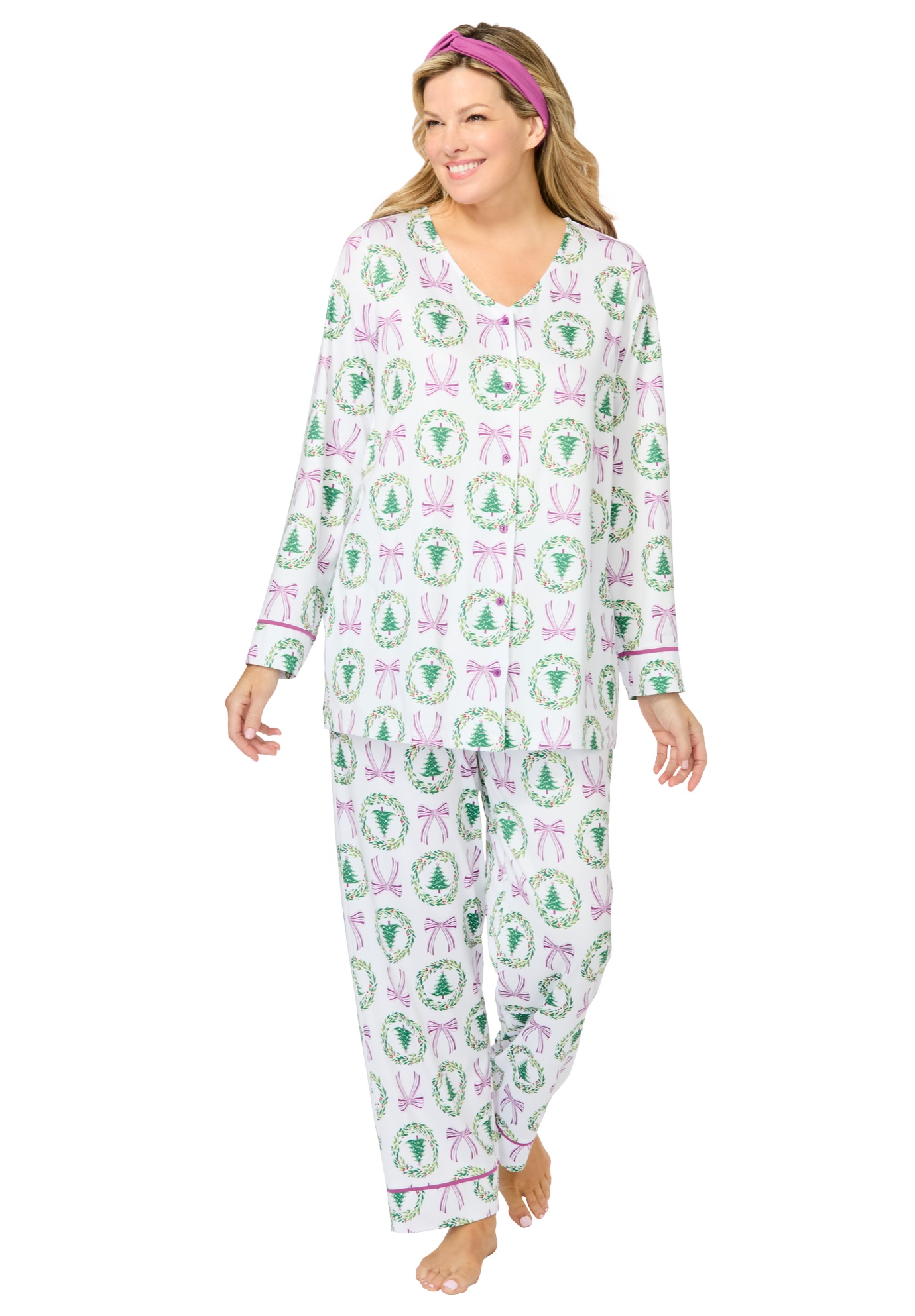 Plus Size Women's Dreams & Co.® V-Neck Pajama & Headband Set by Dreams & Co. in White Holiday Tile (Size L)