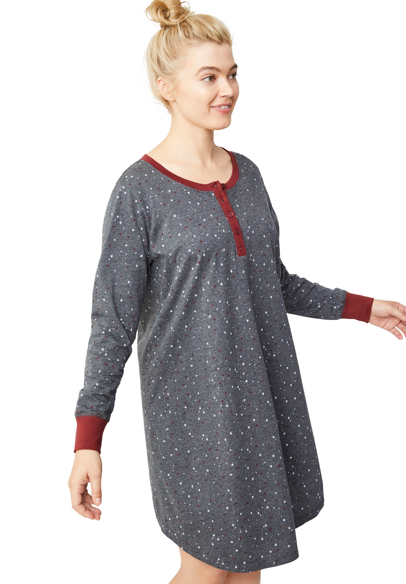 Plus Size Women's Long Sleeve Henley Sleepshirt by ellos in Heather Charcoal Star (Size 3X)