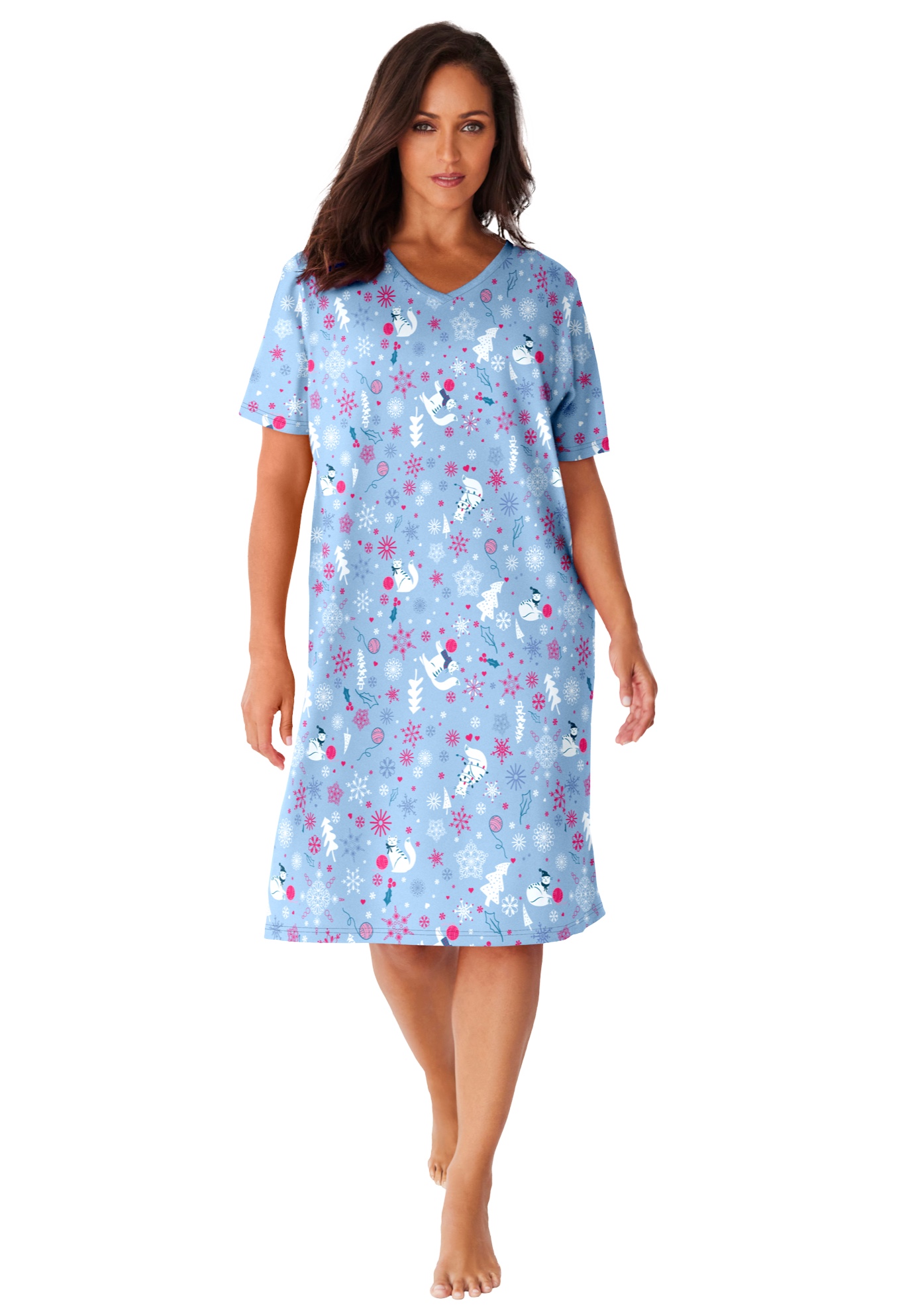 Plus Size Women's Print Sleepshirt by Dreams & Co. in Sky Blue Winter Cat (Size M/L) Nightgown
